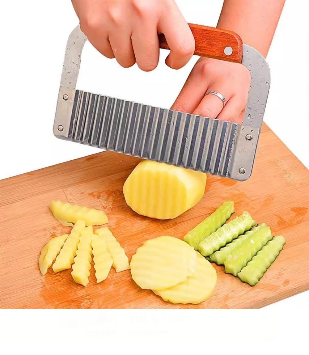 Raspador corrugado, cortador de verduras, cortador de patatas ondulado, cortador de patatas de acero inoxidable, cortador de tiras, cuchillo para patatas fritas