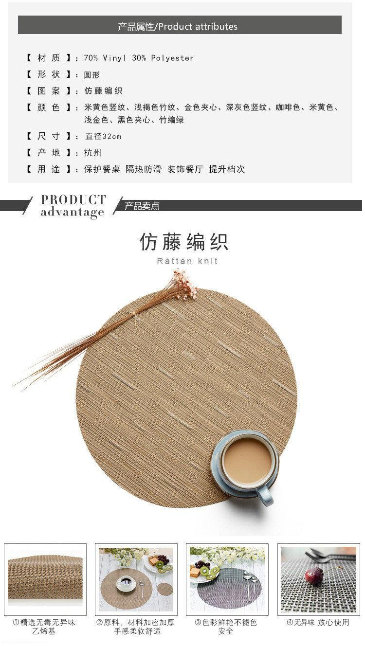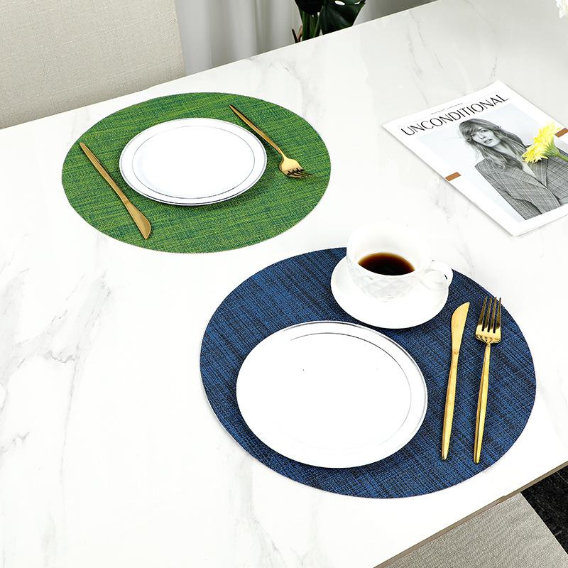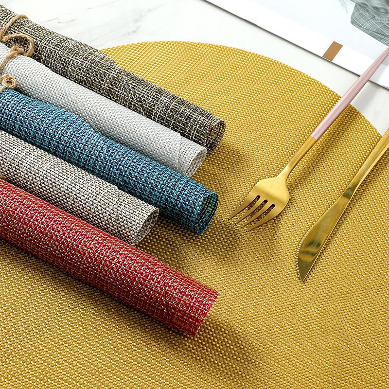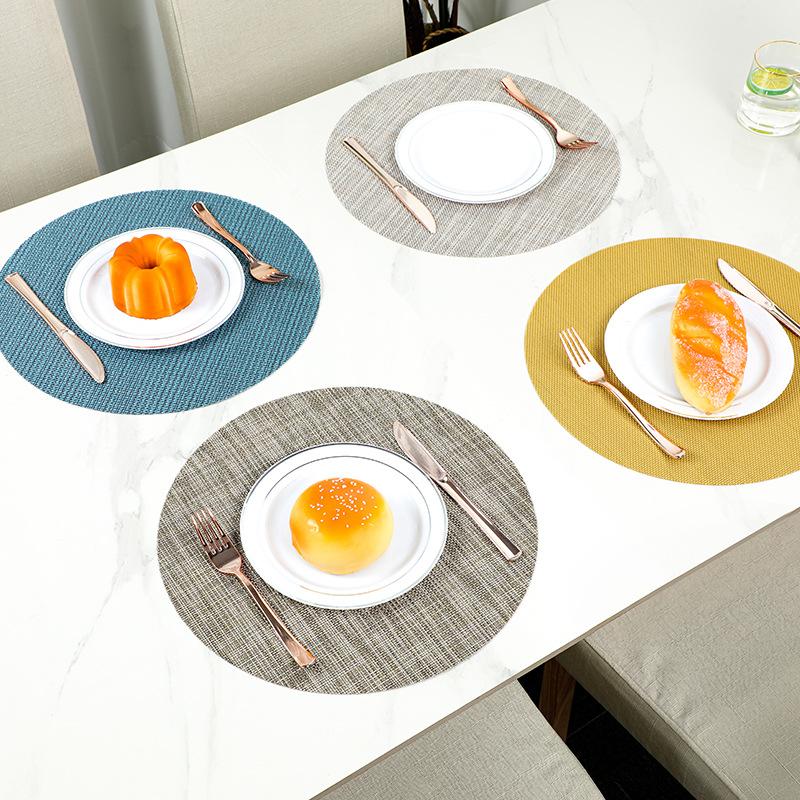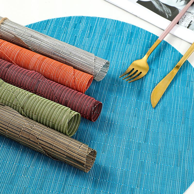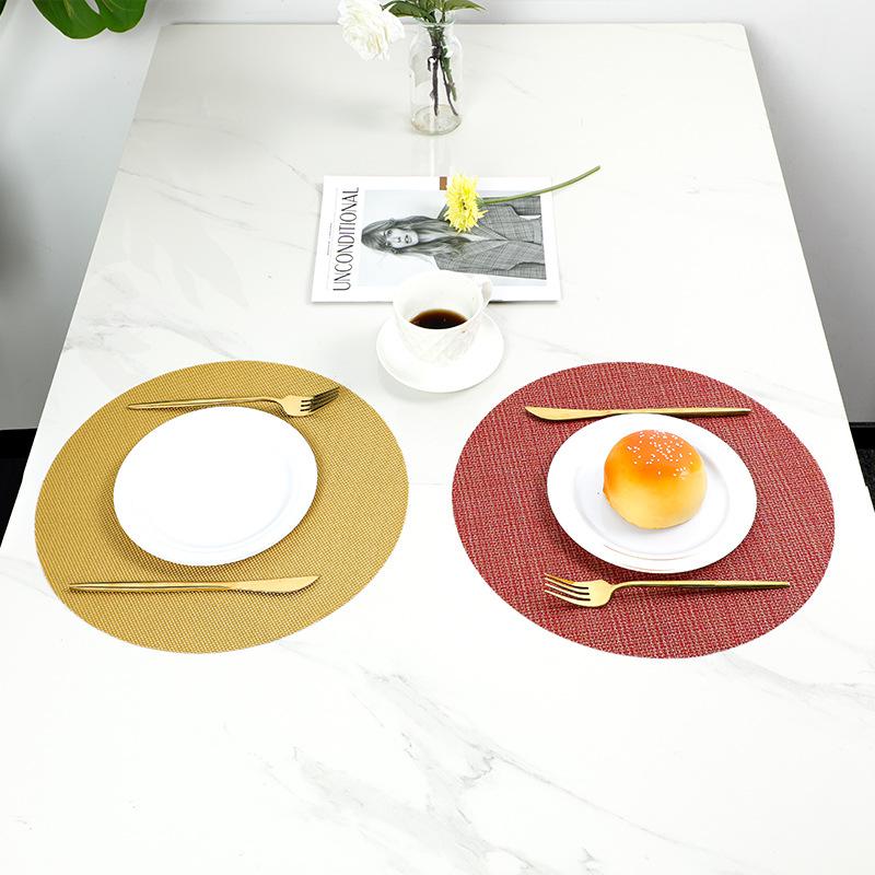 Mantel individual de PVC tejido redondo transfronterizo Teslin, tapete aislante térmico antideslizante europeo, mantel individual occidental al por mayor