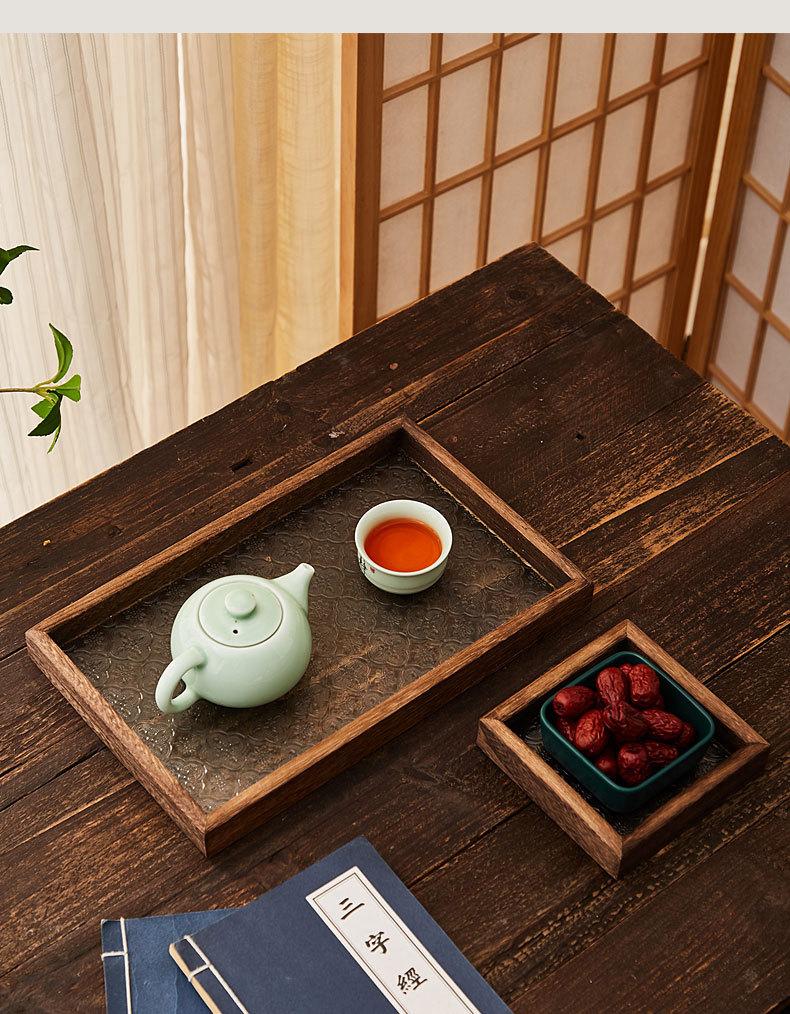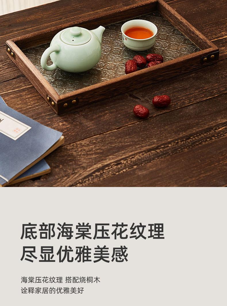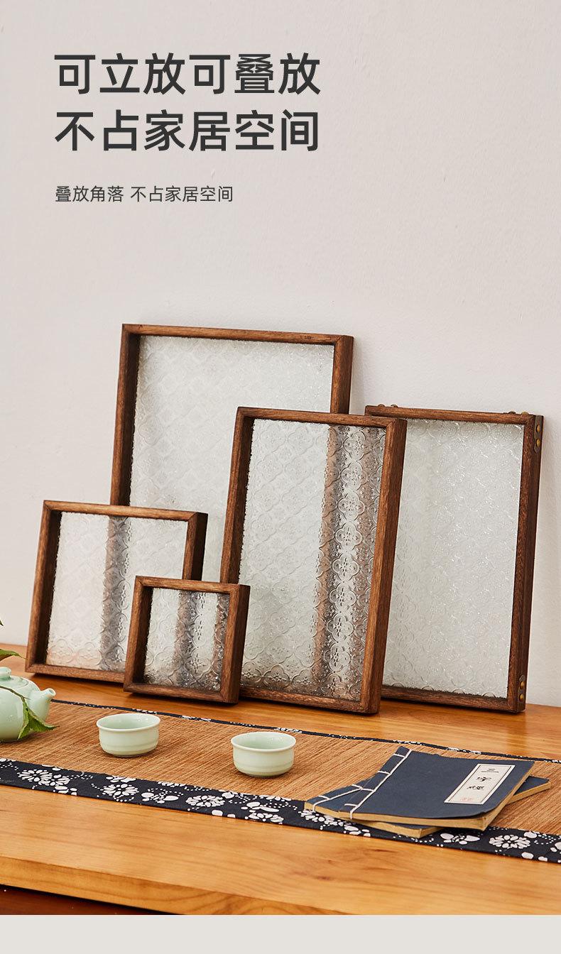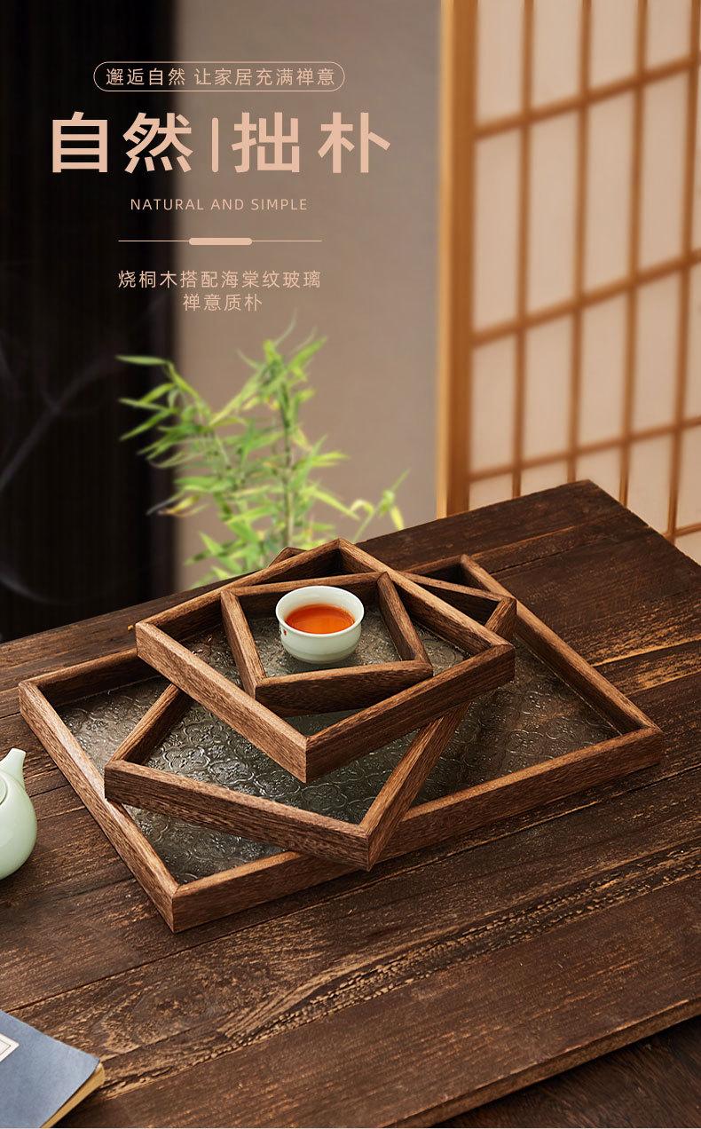 Bandeja de vidrio con forma de flor de begonia de madera maciza, bandeja de té rectangular, bandeja para refrigerios domésticos, taza de té, taza de agua, bandeja de vidrio decorativa