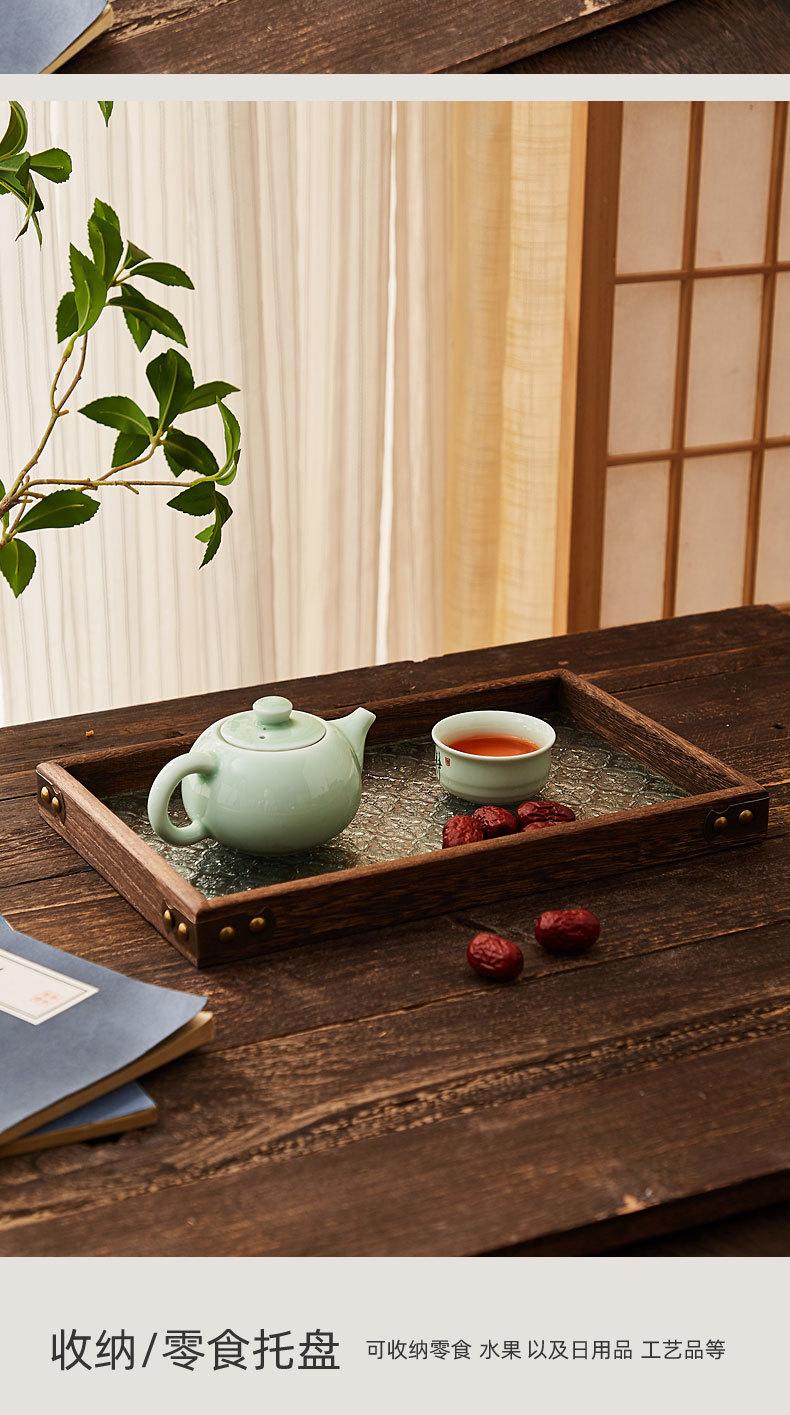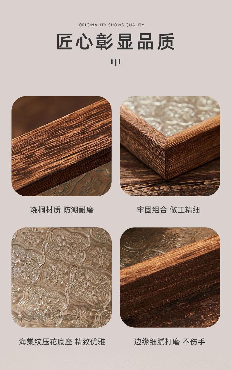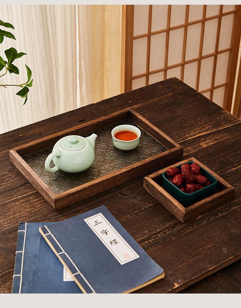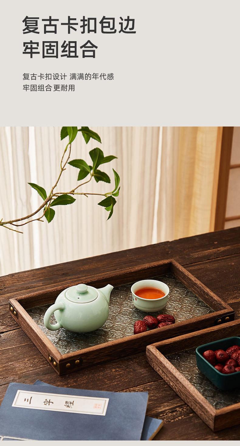 Bandeja de vidrio con forma de flor de begonia de madera maciza, bandeja de té rectangular, bandeja para refrigerios domésticos, taza de té, taza de agua, bandeja de vidrio decorativa