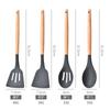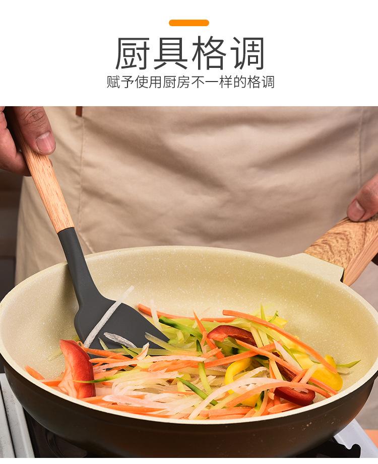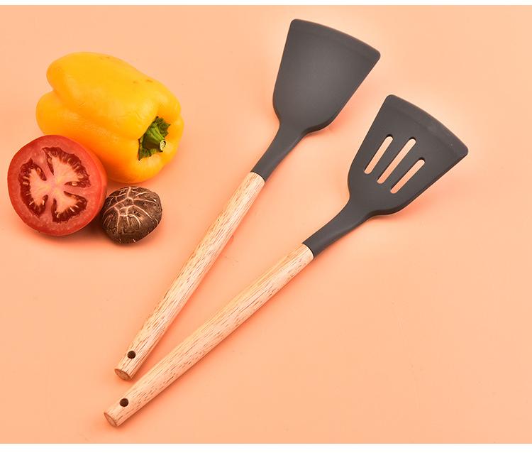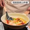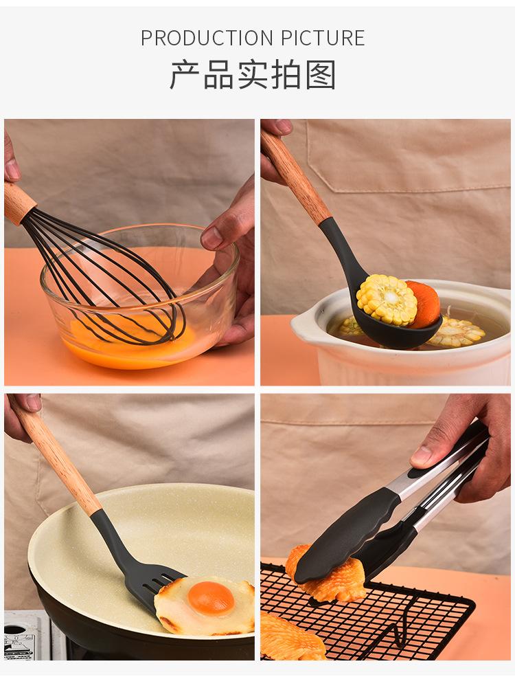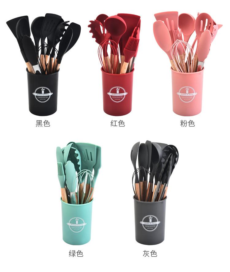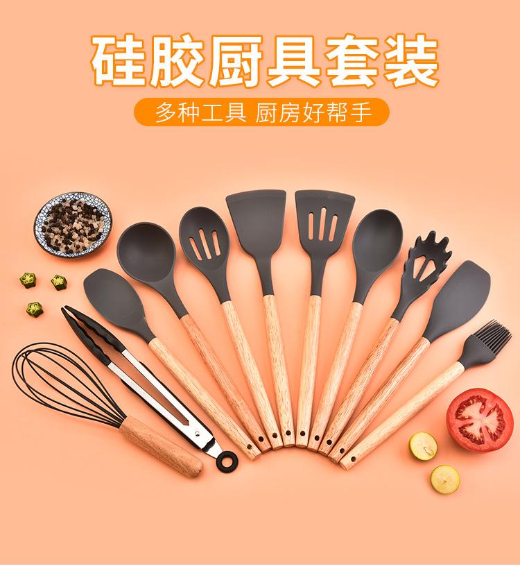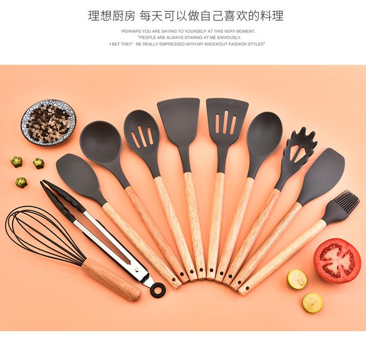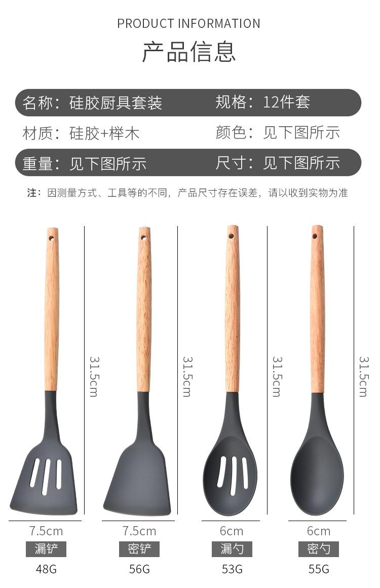 Juego de 12 utensilios de cocina de silicona con mango de madera para el hogar, utensilios de cocina de silicona multiusos, combinación de pala y cuchara de cocina, cuchara de silicona para cocina