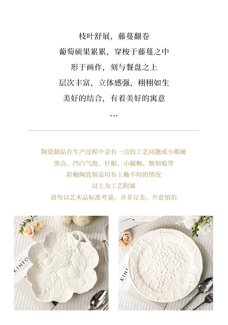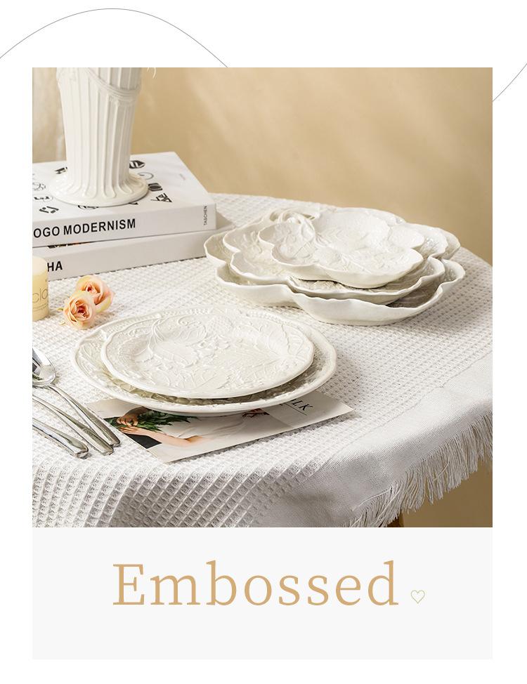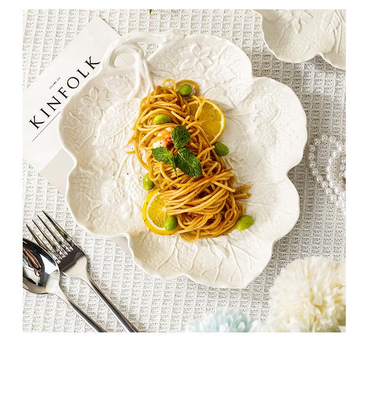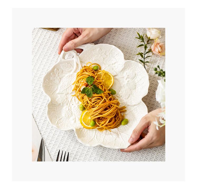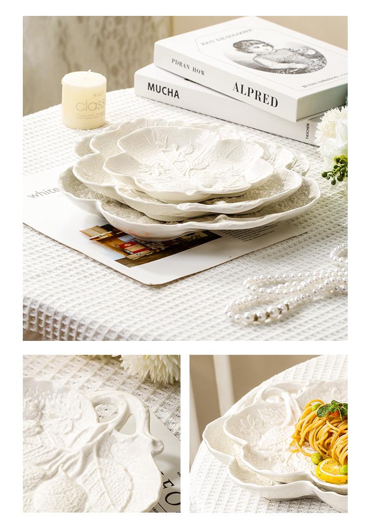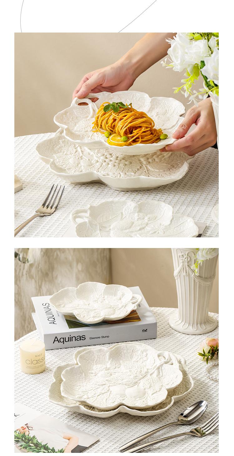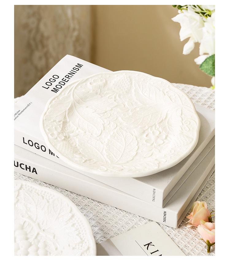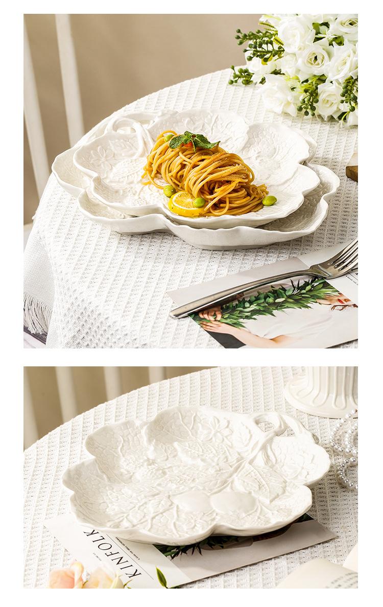 Plato de té de la tarde estilo francés, plato West Point, plato de frutas, plato de pasta occidental con relieve casero, plato de postre de cerámica para ensalada