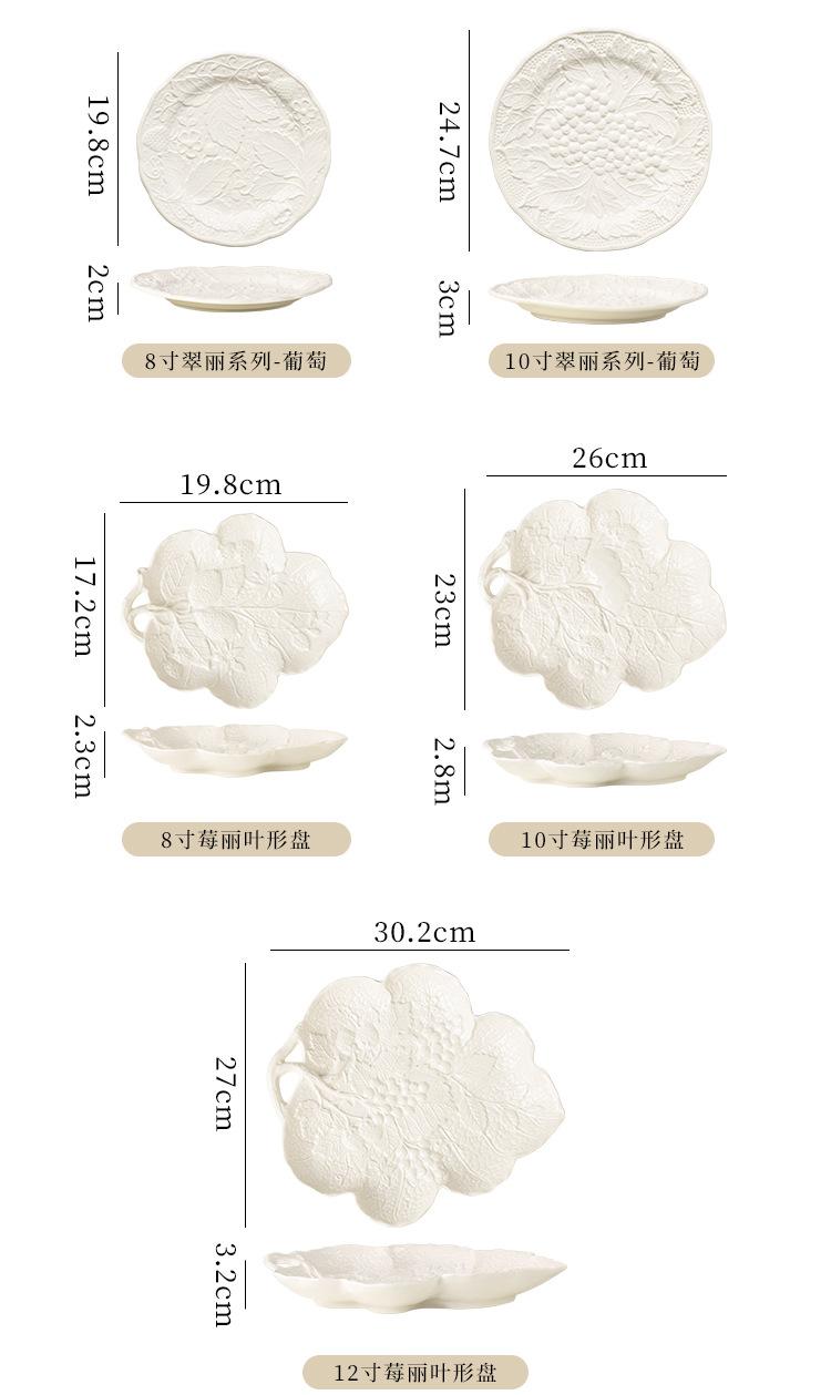 8-inch tree grape dish (white), 10-inch tree grape dish (white), 12-inch tree grape dish (white), Small grape ...