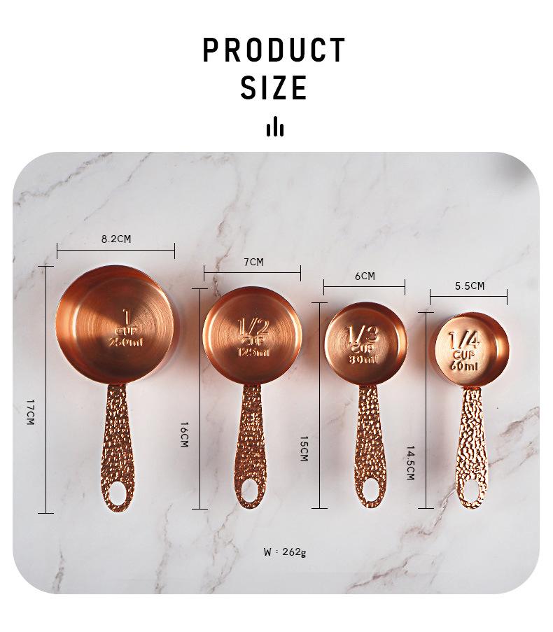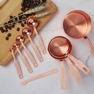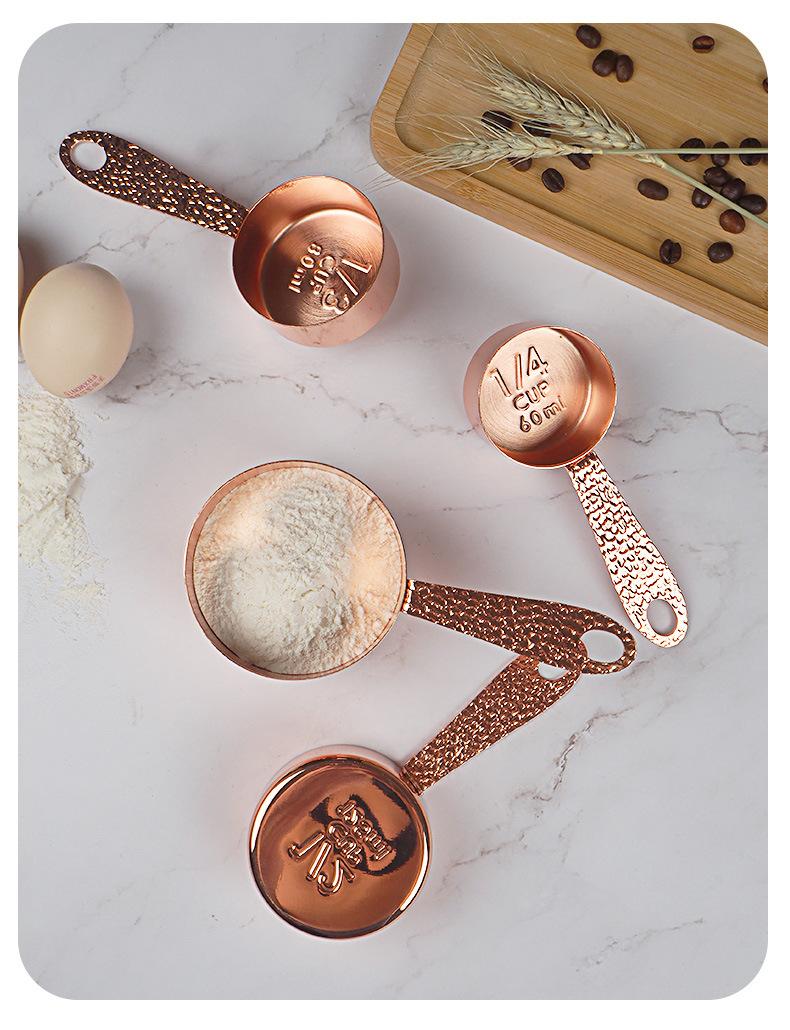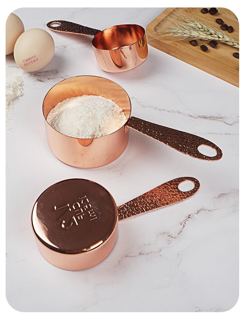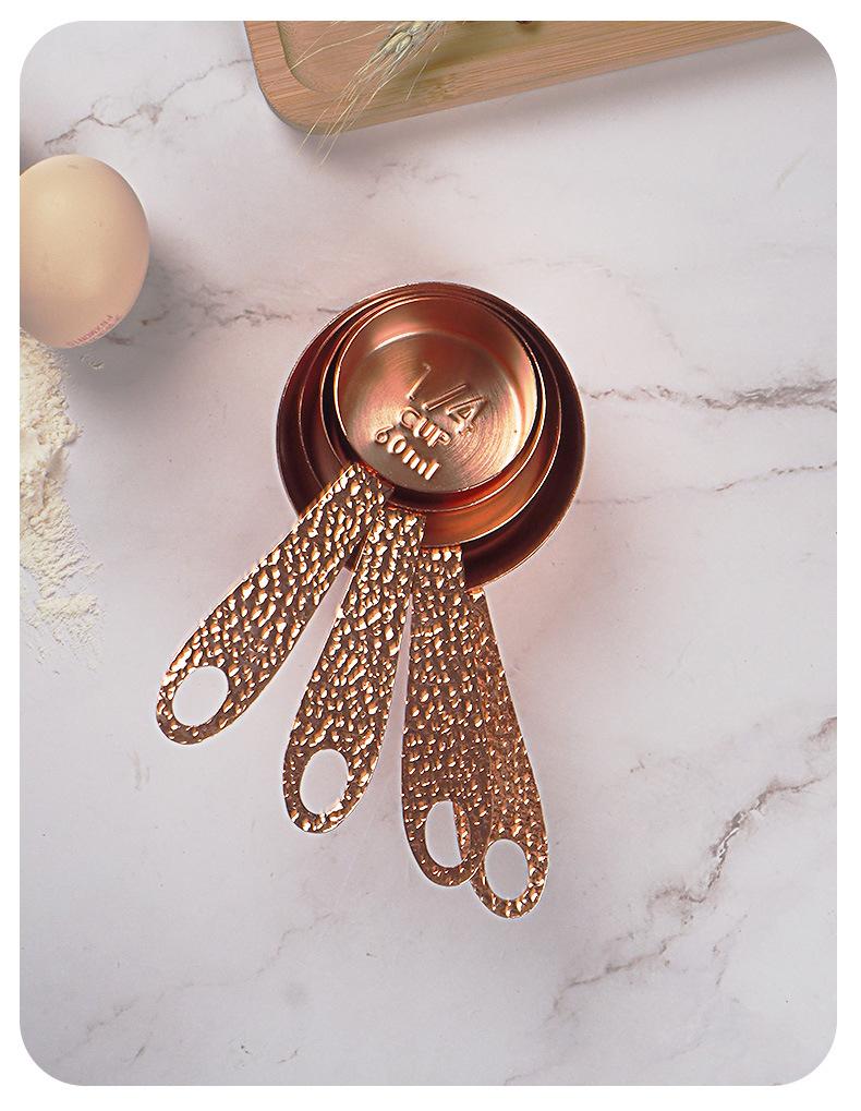 Juego de 8 piezas de estilo nórdico en oro rosa, juego de 4 herramientas para hornear, cuchara medidora para hornear, taza medidora dorada, cuchara medidora