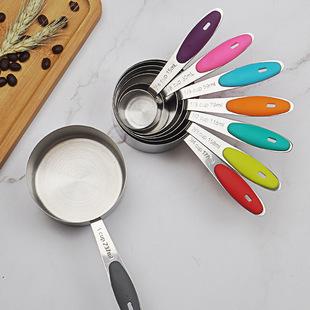 Juego de cucharas medidoras de acero inoxidable, taza medidora, cuchara medidora de ocho piezas, cuchara de café, utensilios de cocina de silicona para hornear