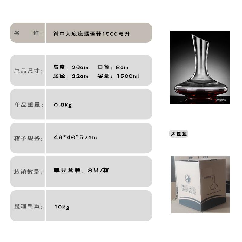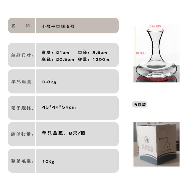 Three-carat decanter 1100 ml, Beveled large base decanter 1500 ml, Small Flat Mouth Decanter