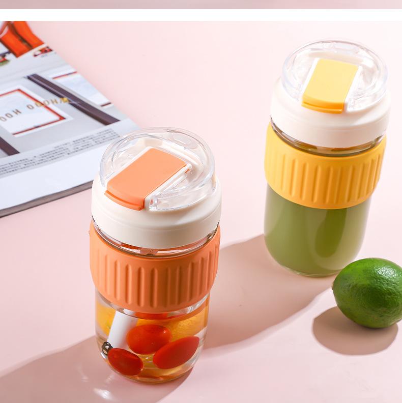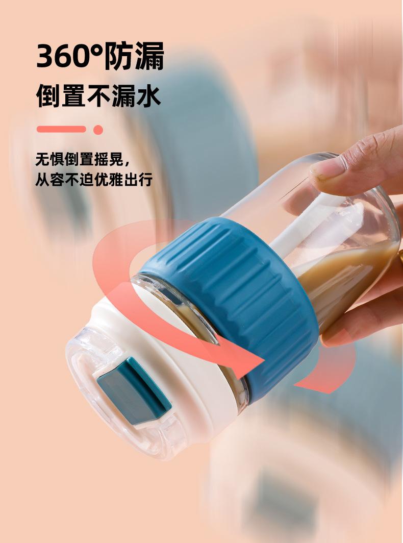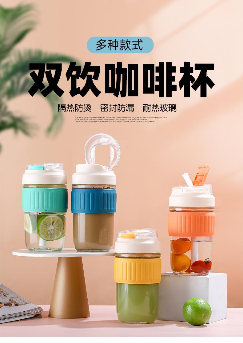 Compra Taza de café doble de estilo coreano, vaso de agua de vidrio con pajita, taza de leche portátil, taza de té con leche de gran capacidad y color alto. al por mayor en Joom.pro
