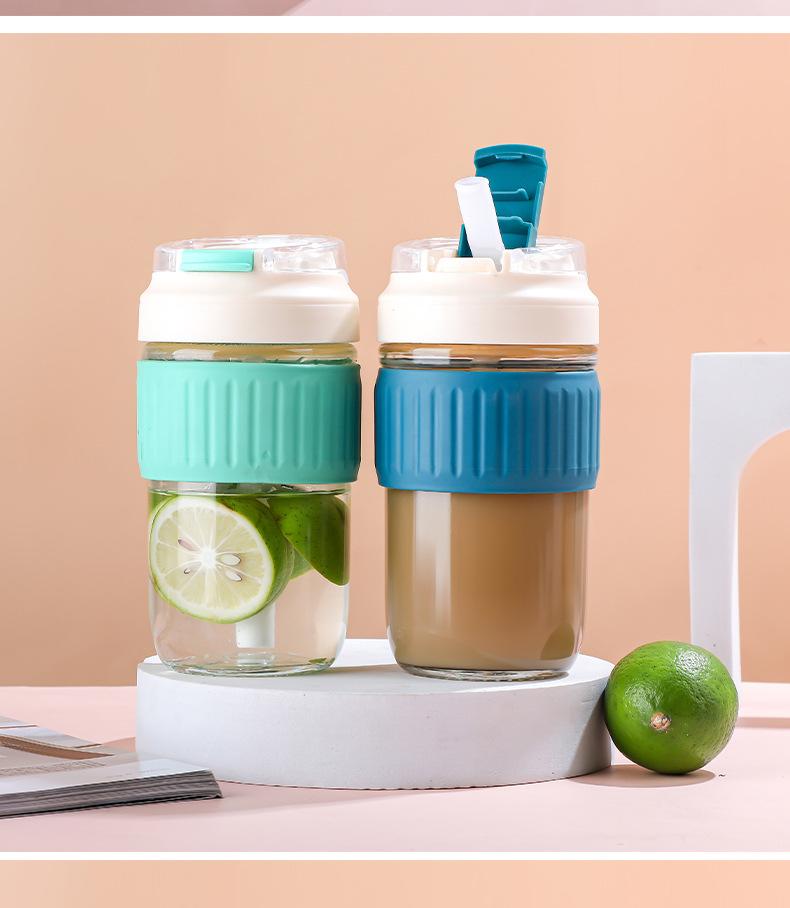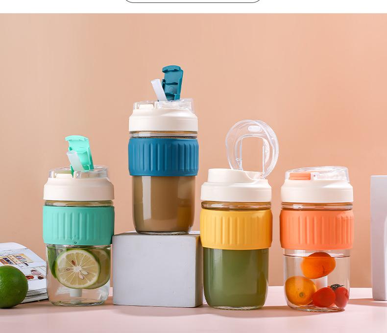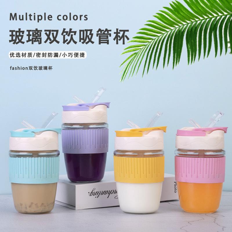 Taza de café doble de estilo coreano, vaso de agua de vidrio con pajita, taza de leche portátil, taza de té con leche de gran capacidad y color alto.
