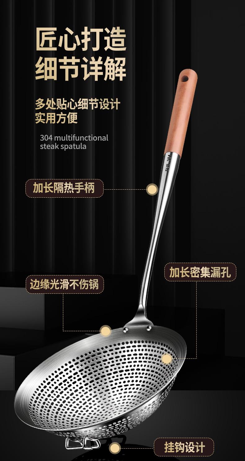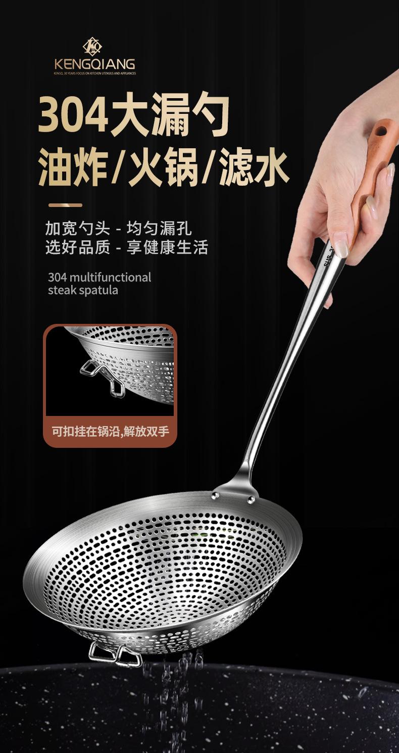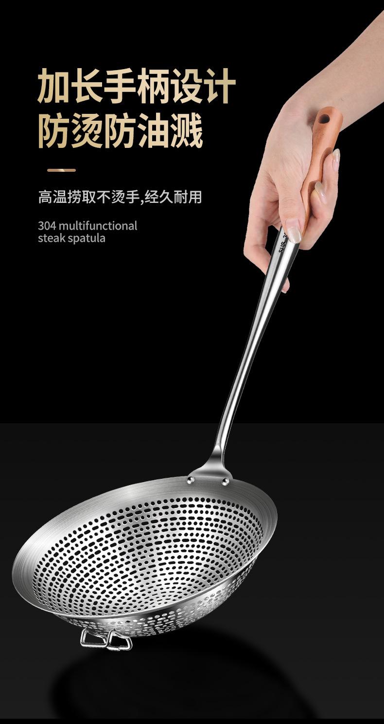 Colador de acero inoxidable 304 para cocina doméstica, colador grande para fideos, cuchara con gancho, colador especial para olla caliente de carne.