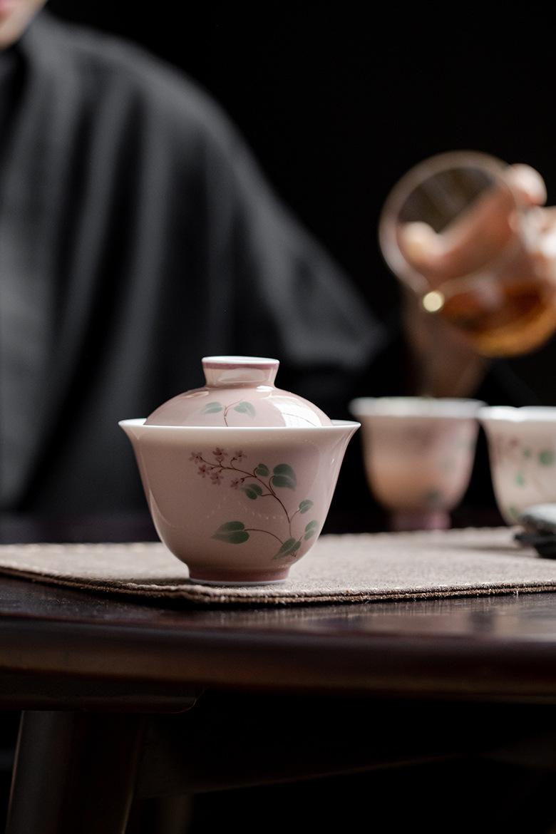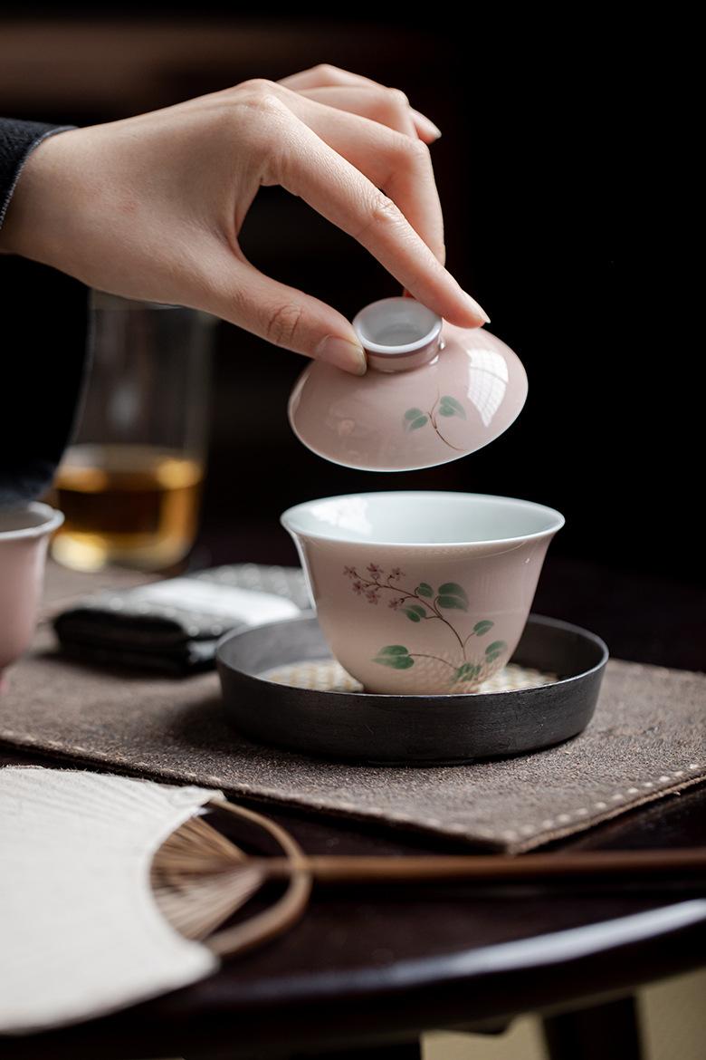 Cuenco de cerámica Miyan pintado a mano con tapa esmaltada, tazón de té grande para el hogar, taza de té, juego de té de kung fu antiescaldado