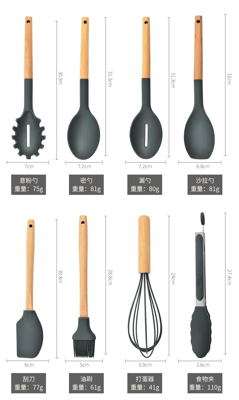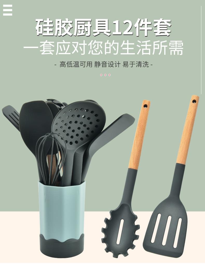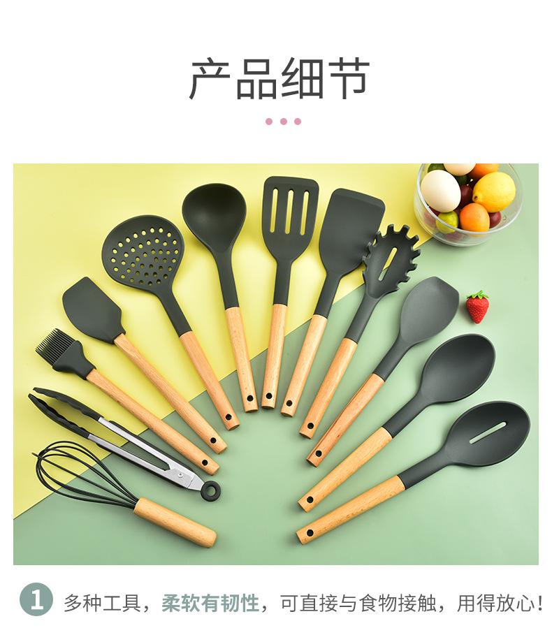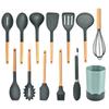Espátula de silicona con mango de madera cuchara para cocinar juego de utensilios de cocina de 11 piezas barril de almacenamiento juego de utensilios de cocina de silicona de 12 piezas