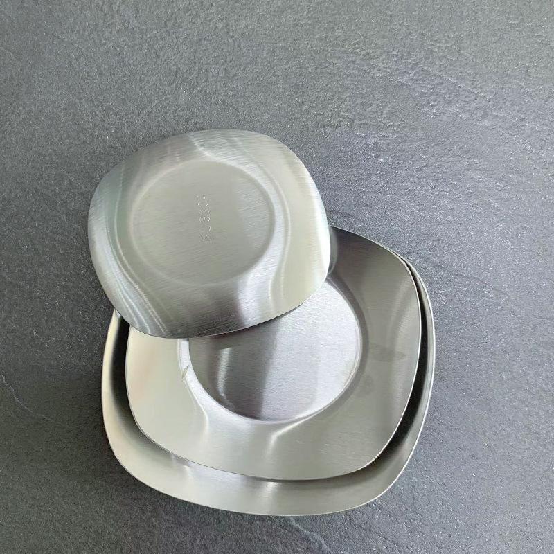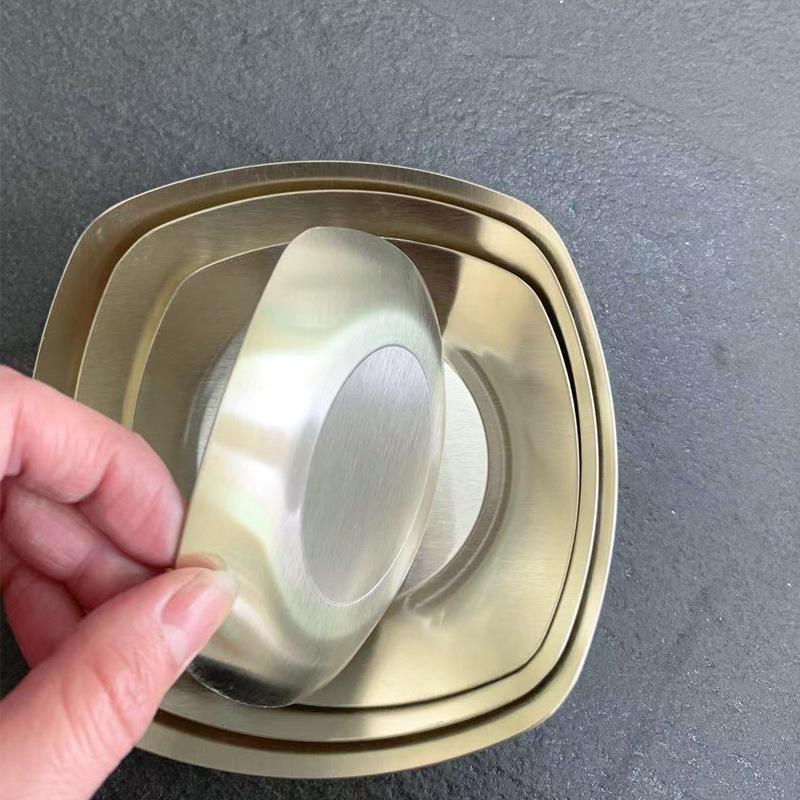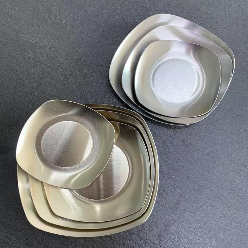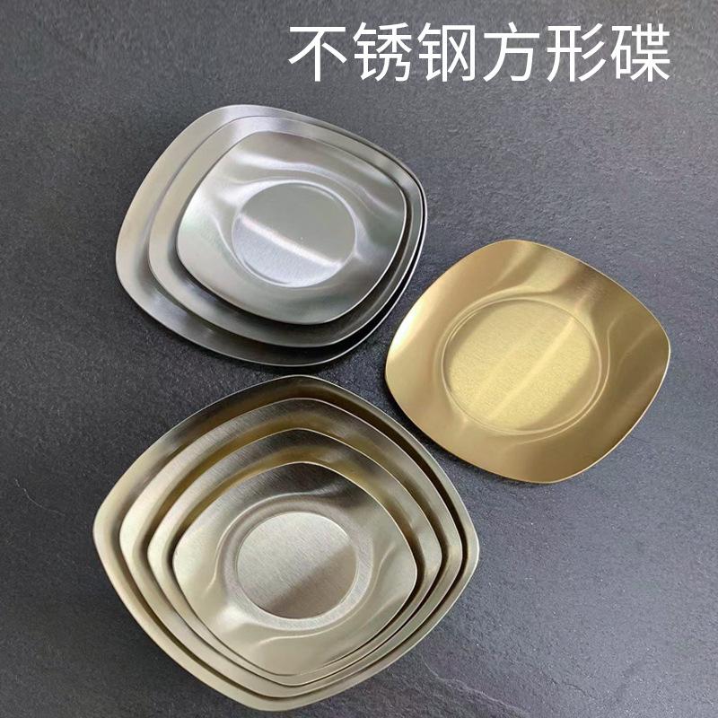 Plato Cuadrado de Acero Inoxidable 304 Estilo Coreano Bandeja para Barbacoa Plato Comercial de Fondo Plano Plato para Pastelería Plato para Aperitivos Plato Dorado para Escupir Huesos