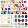 pa041:60-199*1, 50-321, 385, 387, 388, 390, 393 1 de cada uno, 56067*2, taladro manual de alta calidad*1, broca*10, clavos de cuerno dorados y plateados de 10 mm 50 de cada uno, anillos en O dorados y plateados de 8 mm 50 de cada uno, llaveros dorados y plateados 10 de cada uno, colgantes de borla*10 (10 colores como se muestra en la imagen), gotero*5, agitador*5, cuchara*5, dedal amarillo*10, lentejuelas gruesas*12