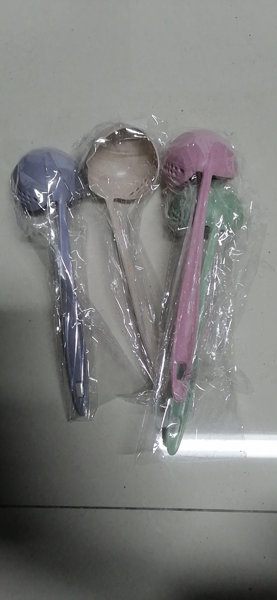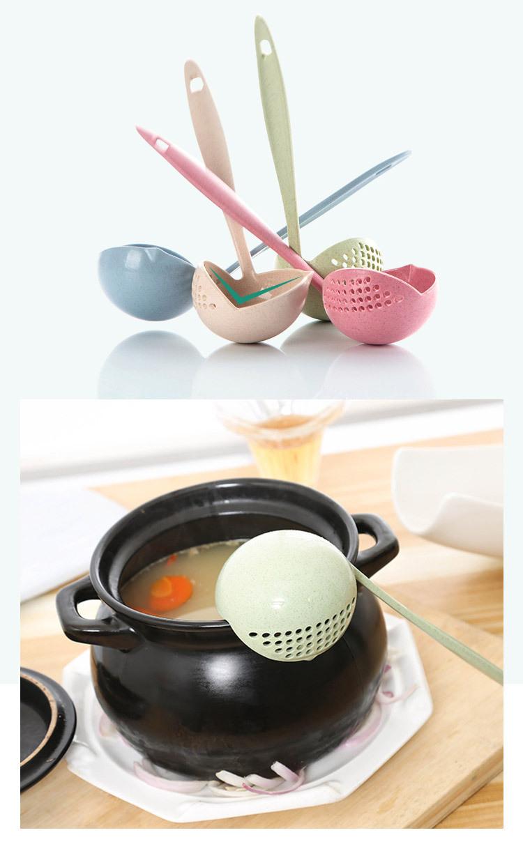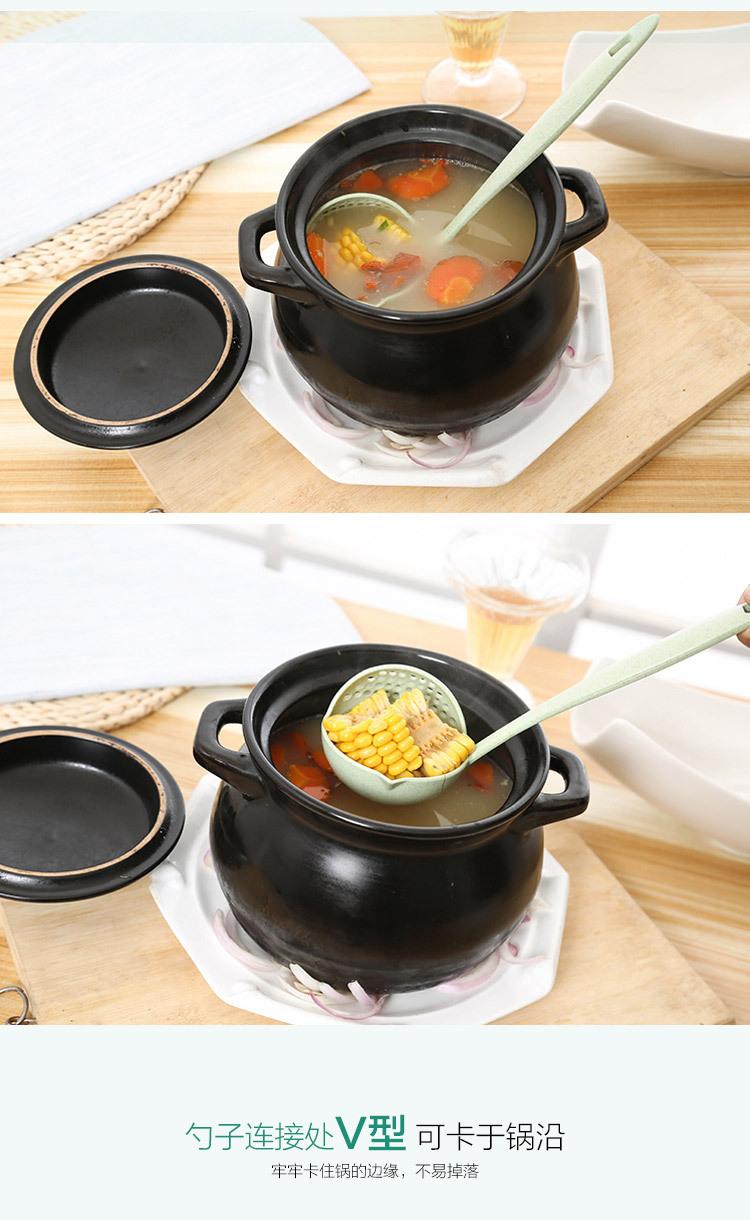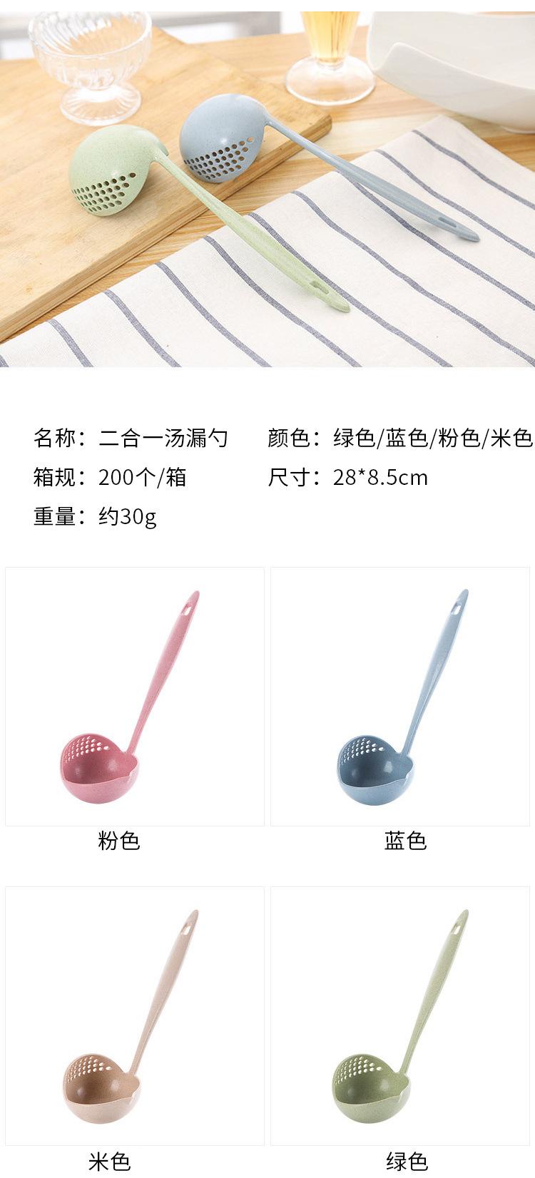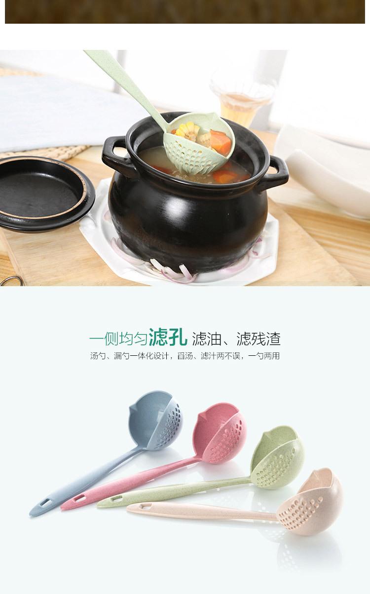 Colador de paja de trigo, mango largo, cuchara grande de plástico, cuchara sopera, colador dos en uno, vajilla práctica, olla caliente, cuchara sopera con fugas de aceite