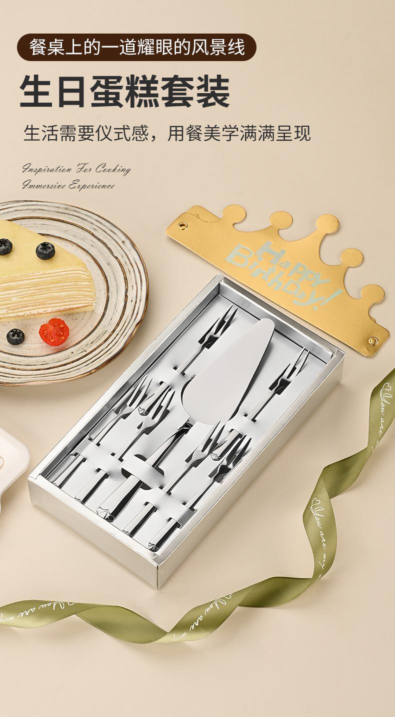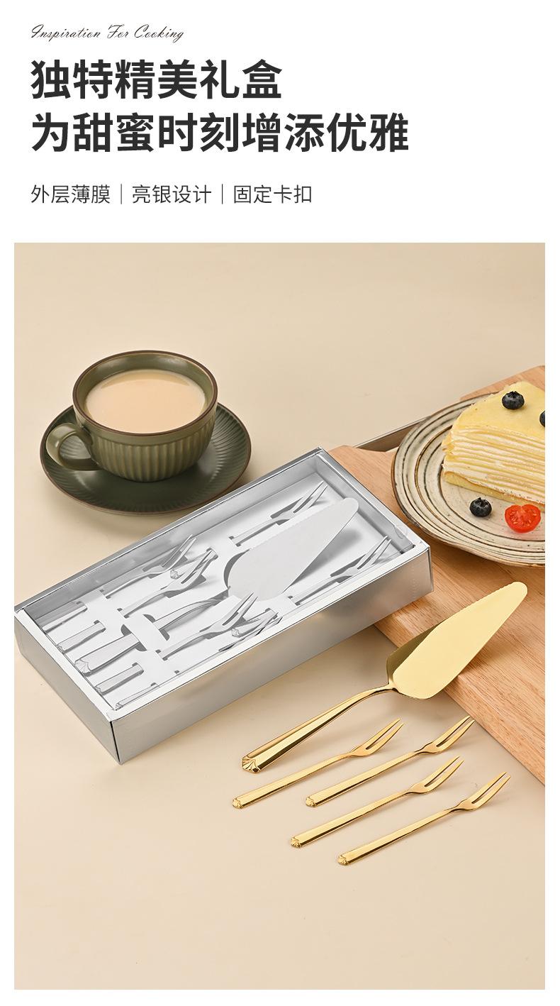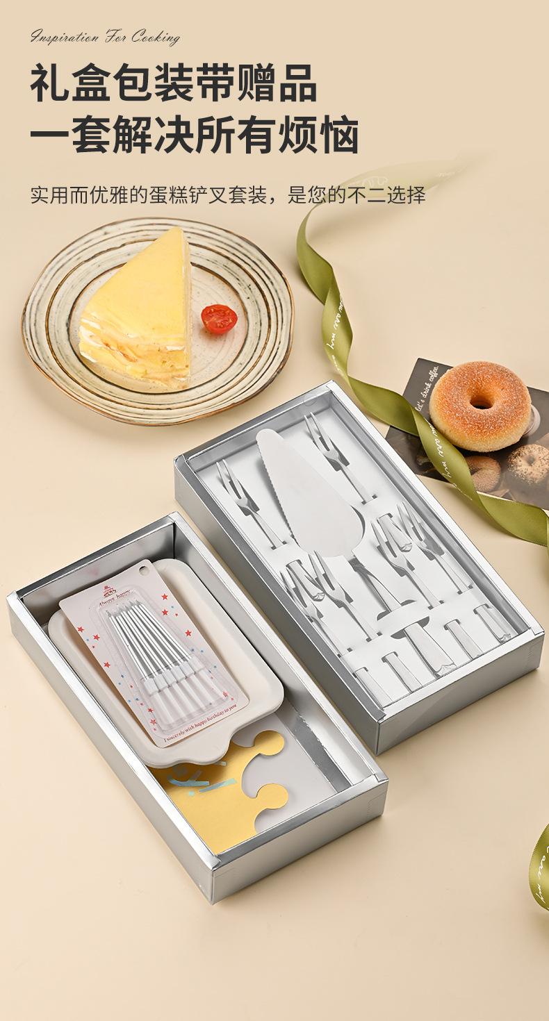 Creativo cuchillo y tenedor para pastel de acero inoxidable, cuchillo y tenedor para pastel de luna de mediados de otoño, traje combinado de caja de regalo de alta gama, vajilla con logotipo personalizado