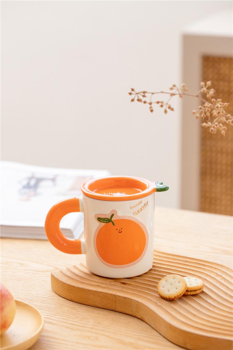 Taza de cerámica de fruta fresca de verano linda taza de texto para niña taza con tapa taza oficina hombres y mujeres pareja taza de café