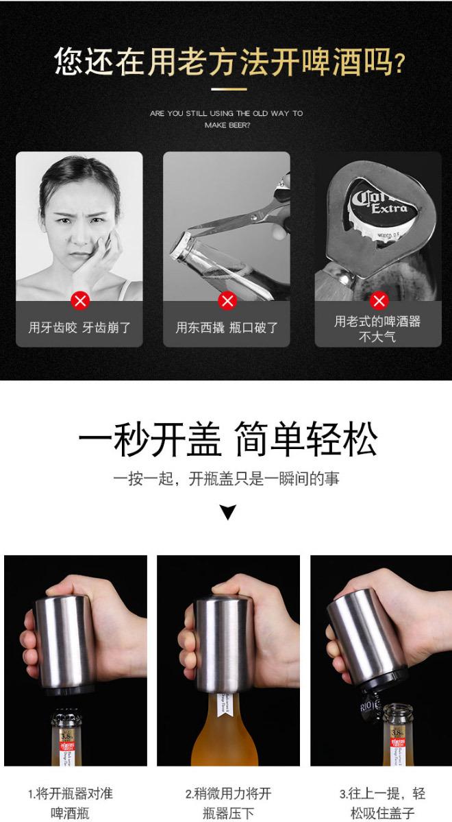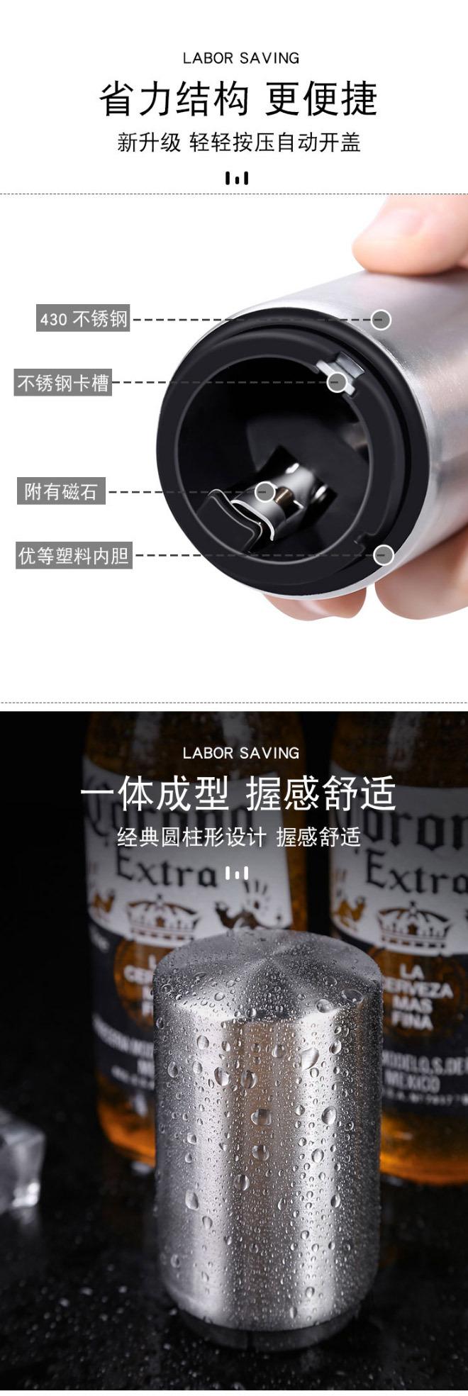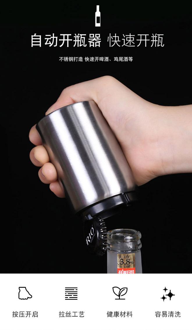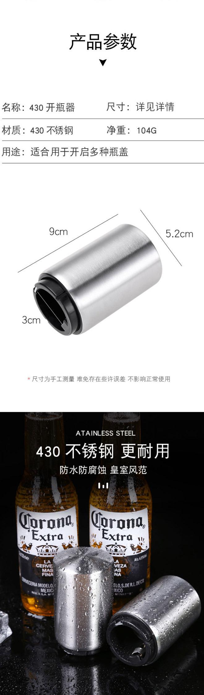 Abridor de botellas de cerveza magnético creativo de tipo prensa 430, abridor de botellas de cerveza multifuncional de acero inoxidable.