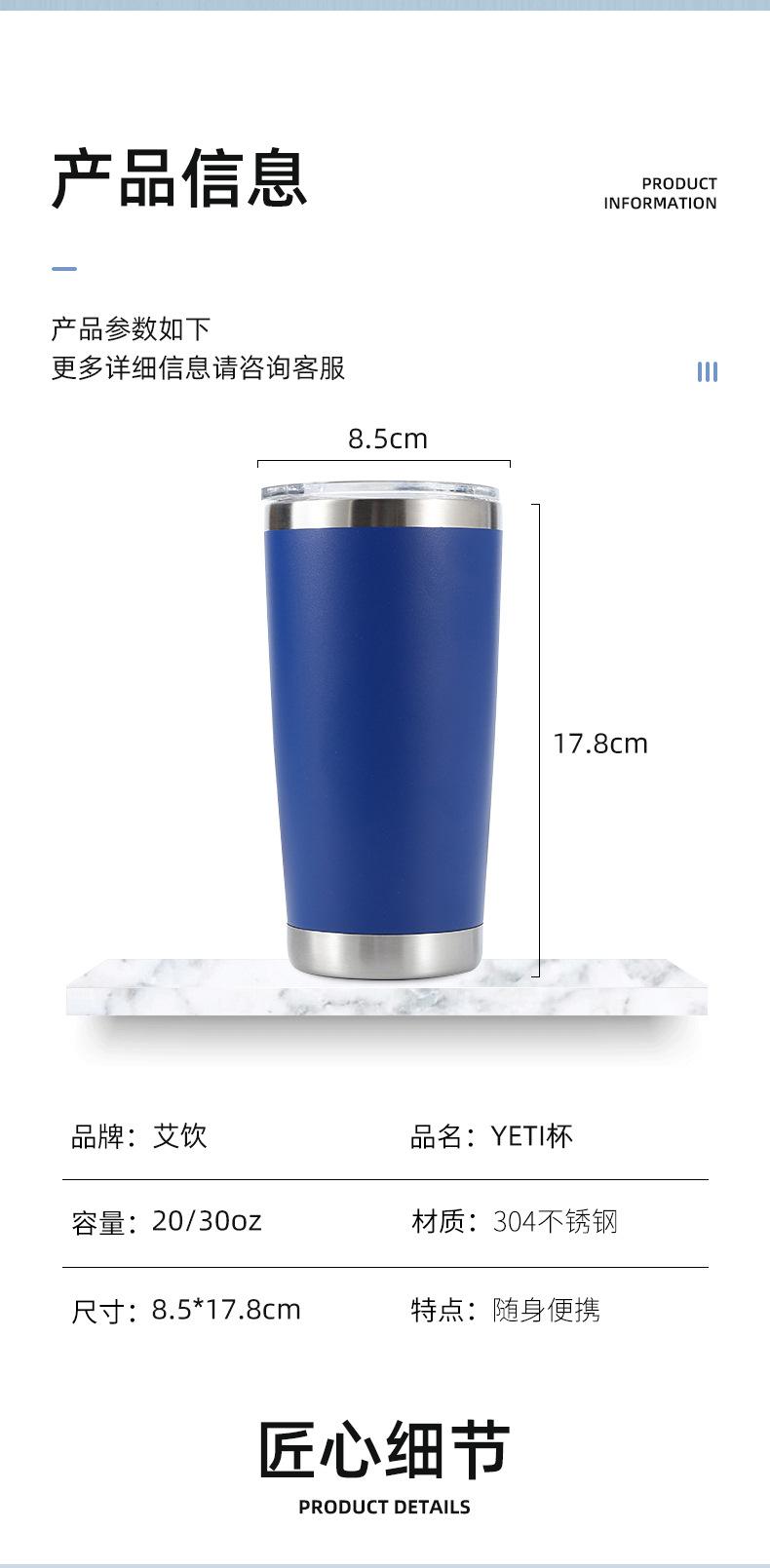 Taza de coche personalizada de 20/30 oz, taza de vacío doble, taza térmica para coche, taza de hielo de acero inoxidable 304, venta al por mayor