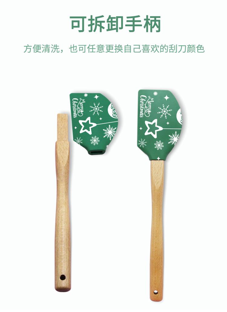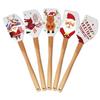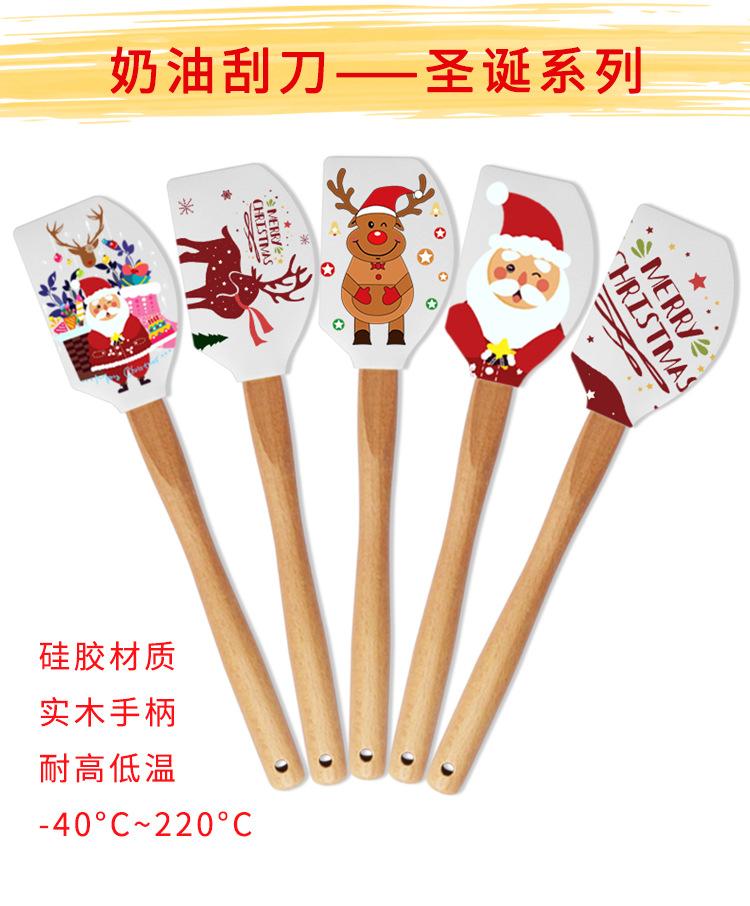 Raspador navideño de silicona con mango de madera, espátula para crema, herramienta para hornear pasteles, pala de silicona, raspador para remover harina