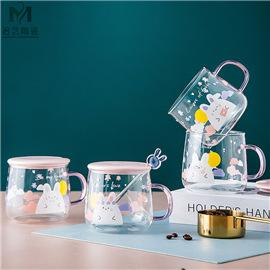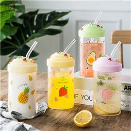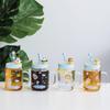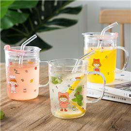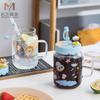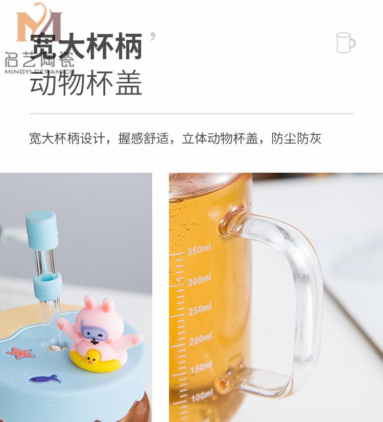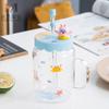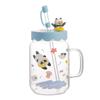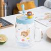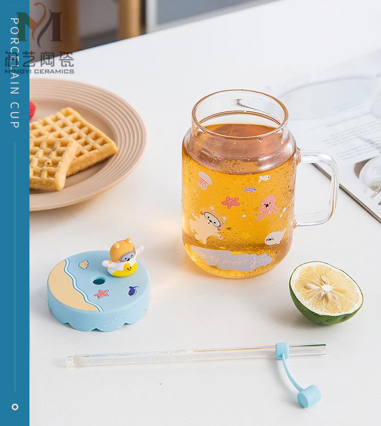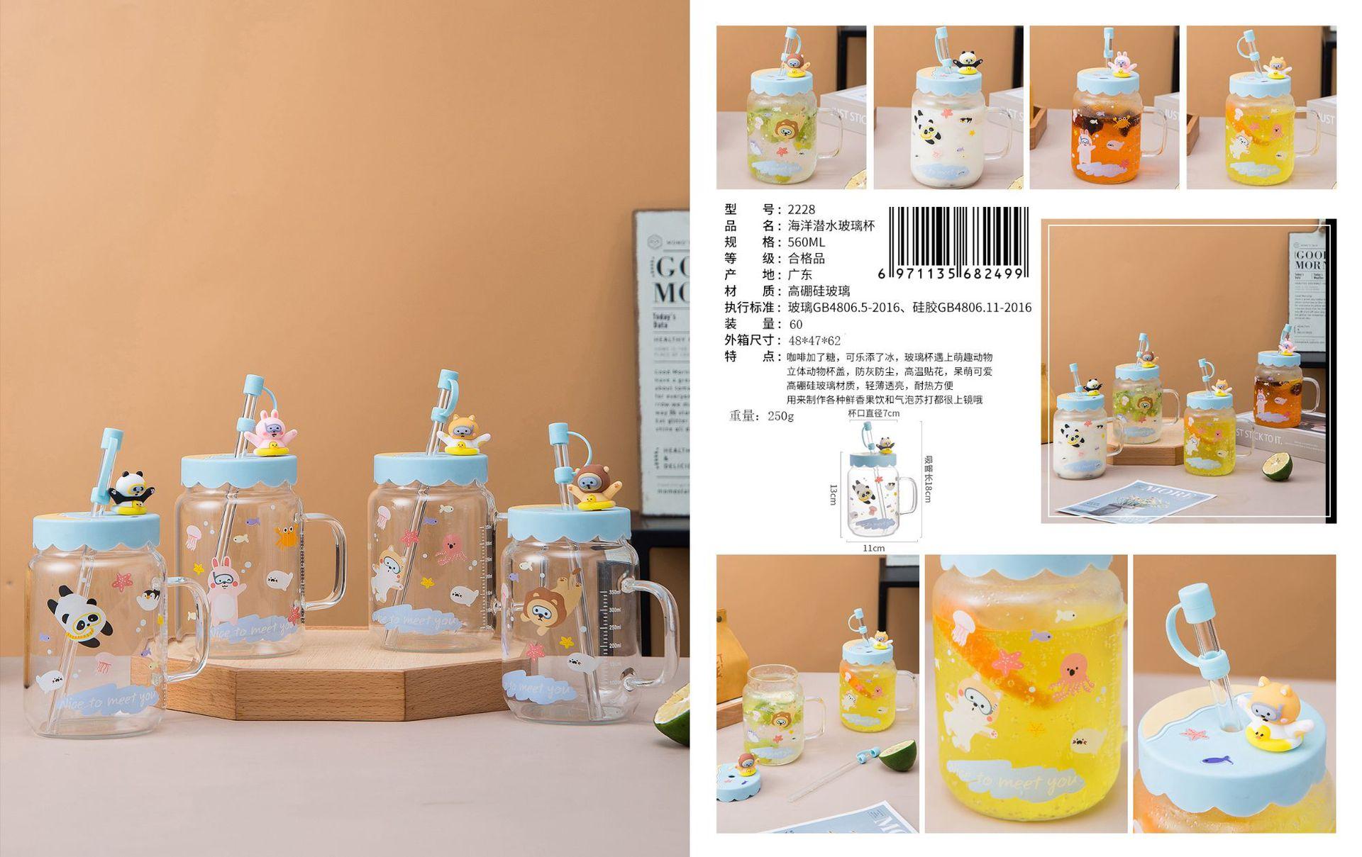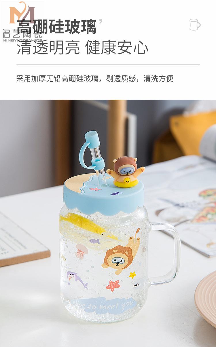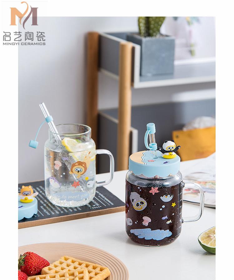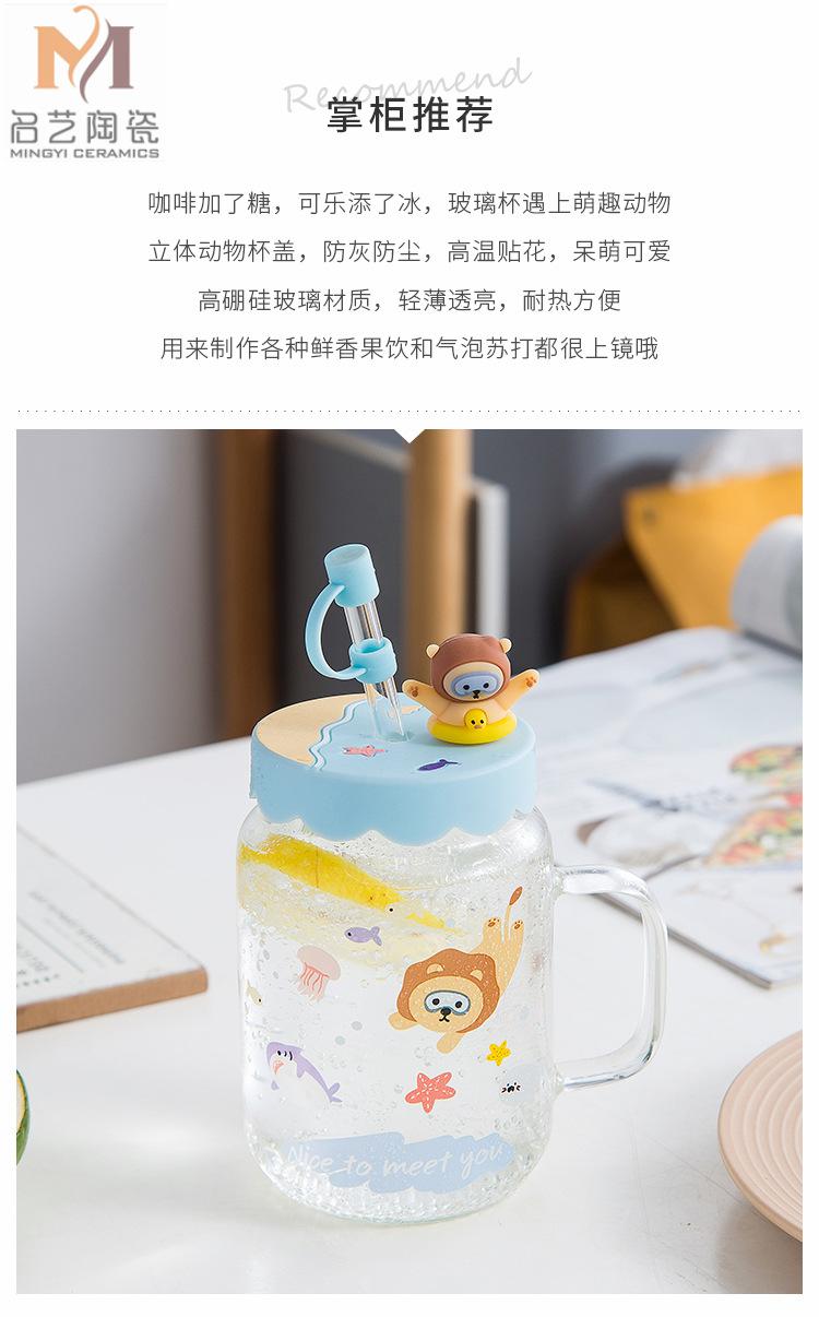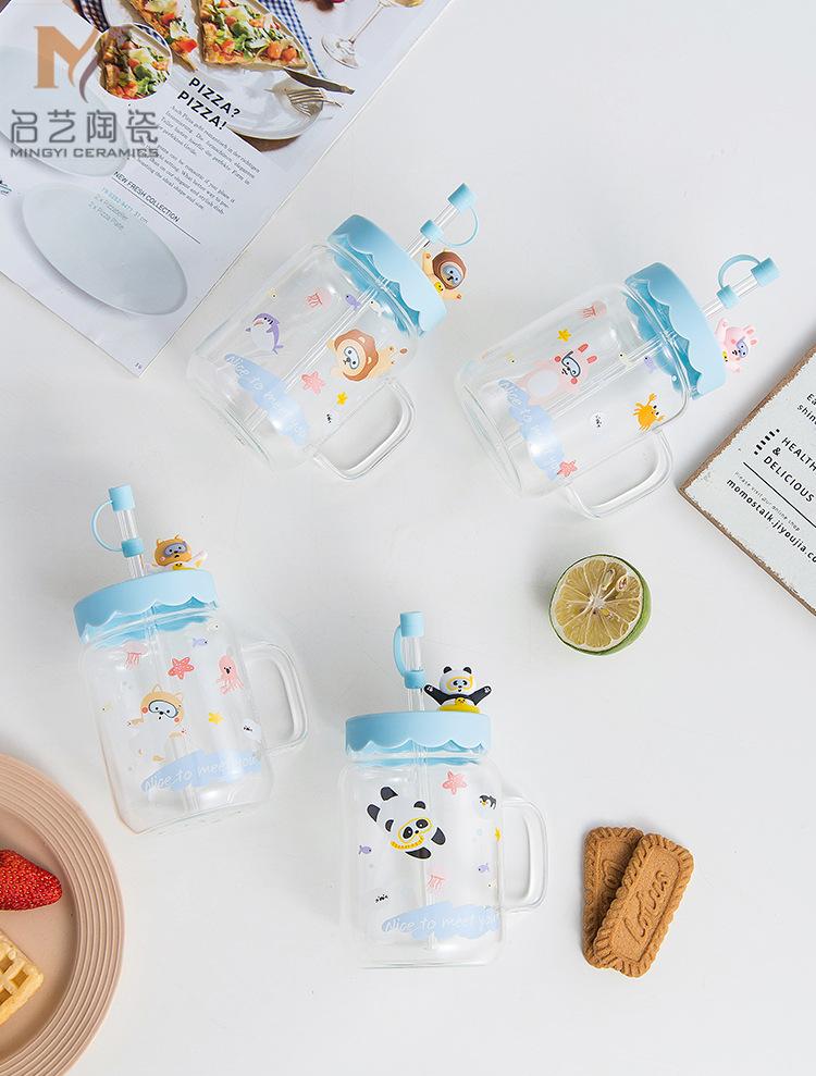 Vaso de agua infantil con tapa de silicona y pajita de la serie Ocean Series, de vidrio, con diseño de dibujos animados, ideal para leche.