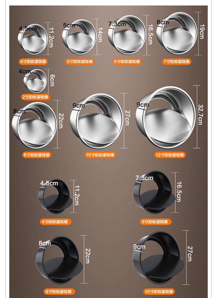 2-inch live bottom cake mold, 4-inch round (live bottom) cake mold (anode) M-4, 6-inch round (live bottom) cak...
