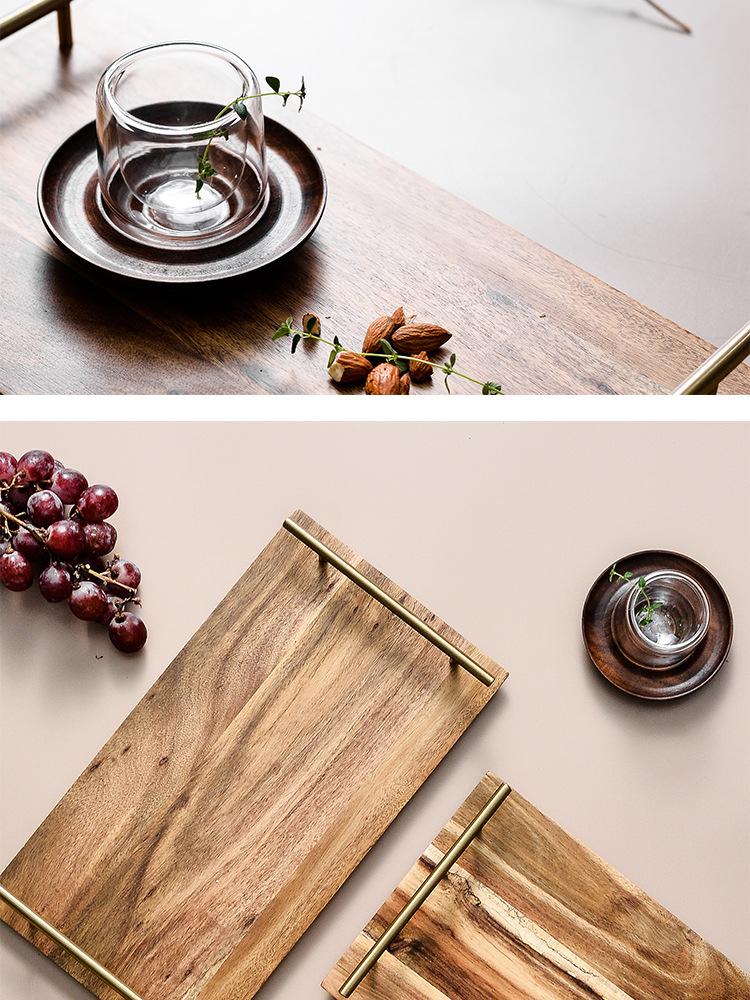 Bandeja nórdica transfronteriza de madera de acacia, plato para ensalada, plato para carne, desayuno, fruta, té de la tarde, agua, postre, bandeja para pasteles
