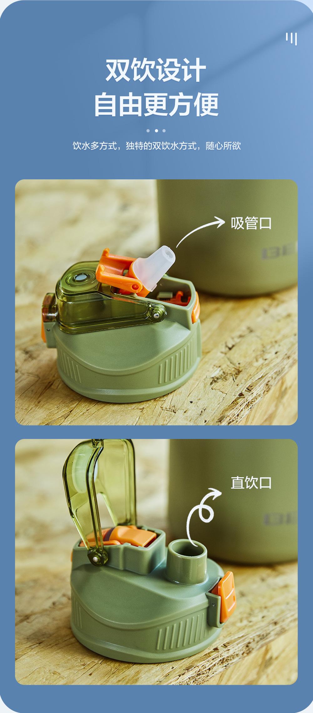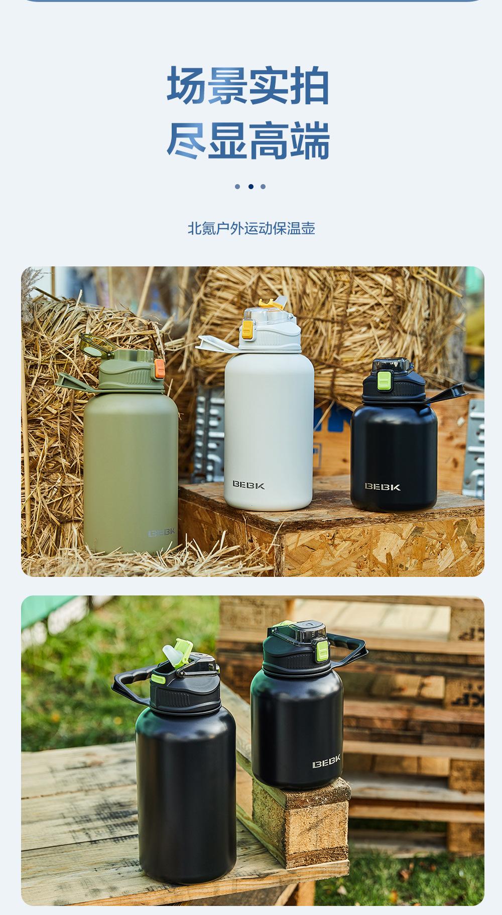 Termo deportivo portátil de acero inoxidable con ventosa de gran valor y asa, olla de muelle de gran capacidad