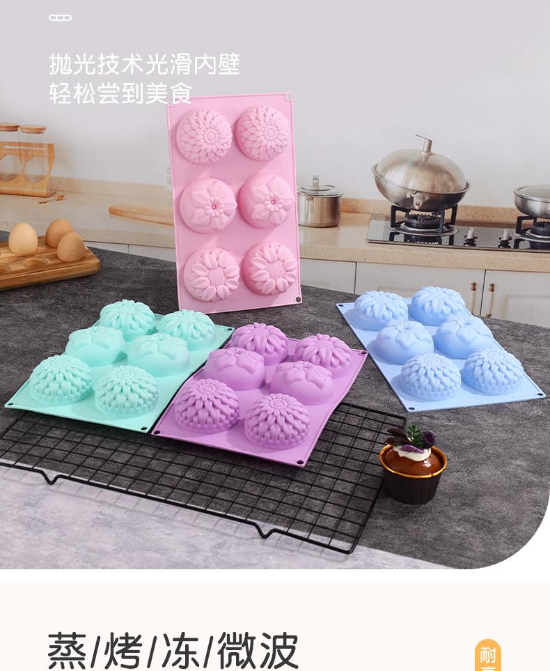 Molde de silicona para tartas de grado alimenticio, redondo, 6 piezas, diseño de girasol, para hornear, jabón hecho a mano, molde para jabón frío