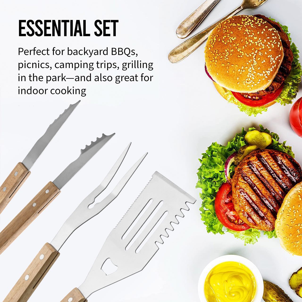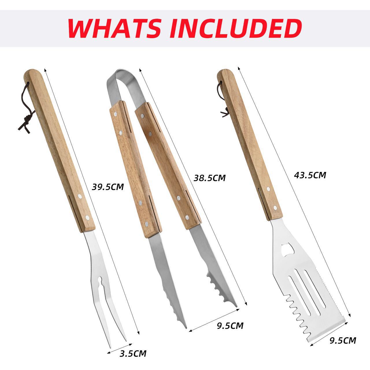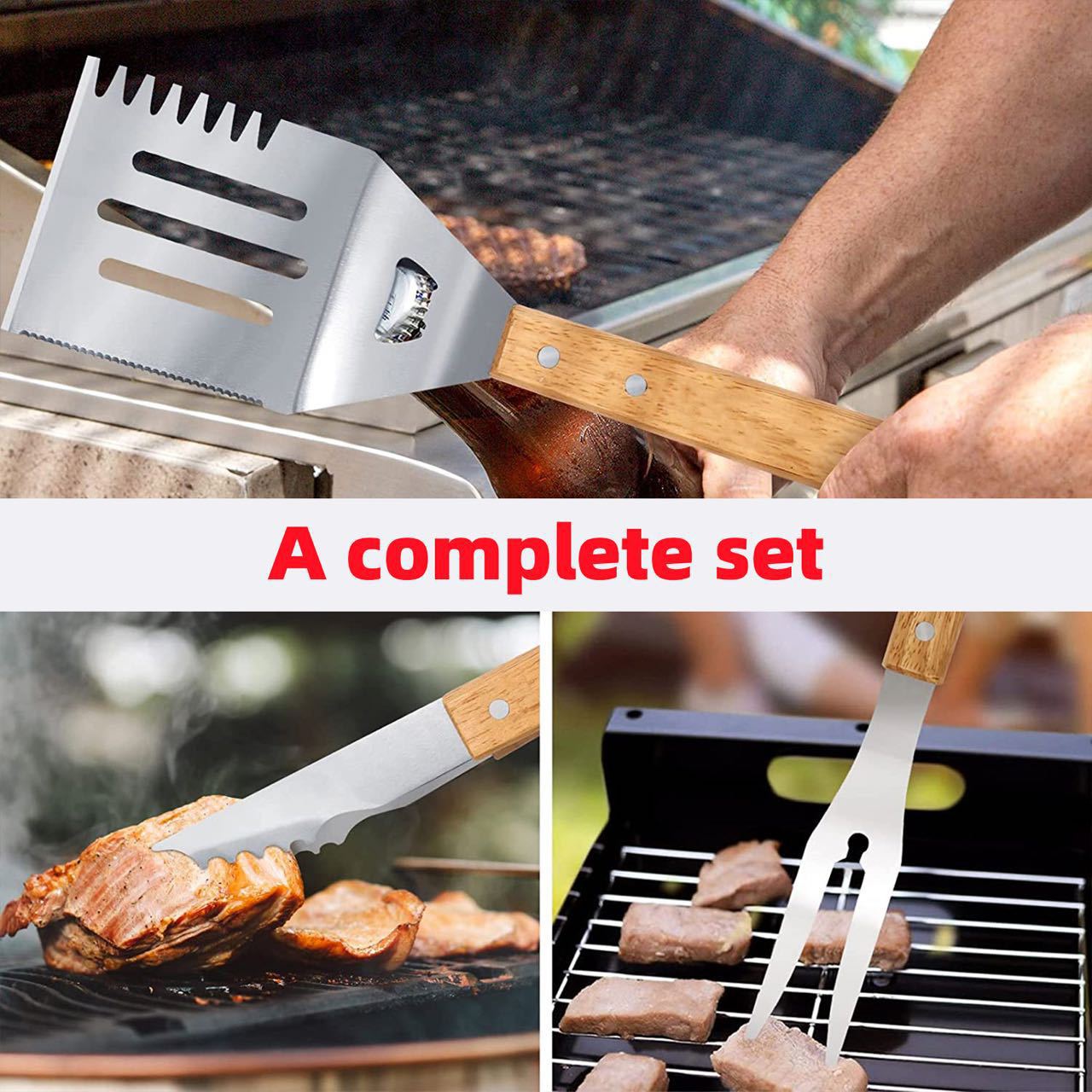 Herramientas para barbacoa transfronterizas, combinación para exteriores, mango de madera, utensilios de barbacoa de acero inoxidable