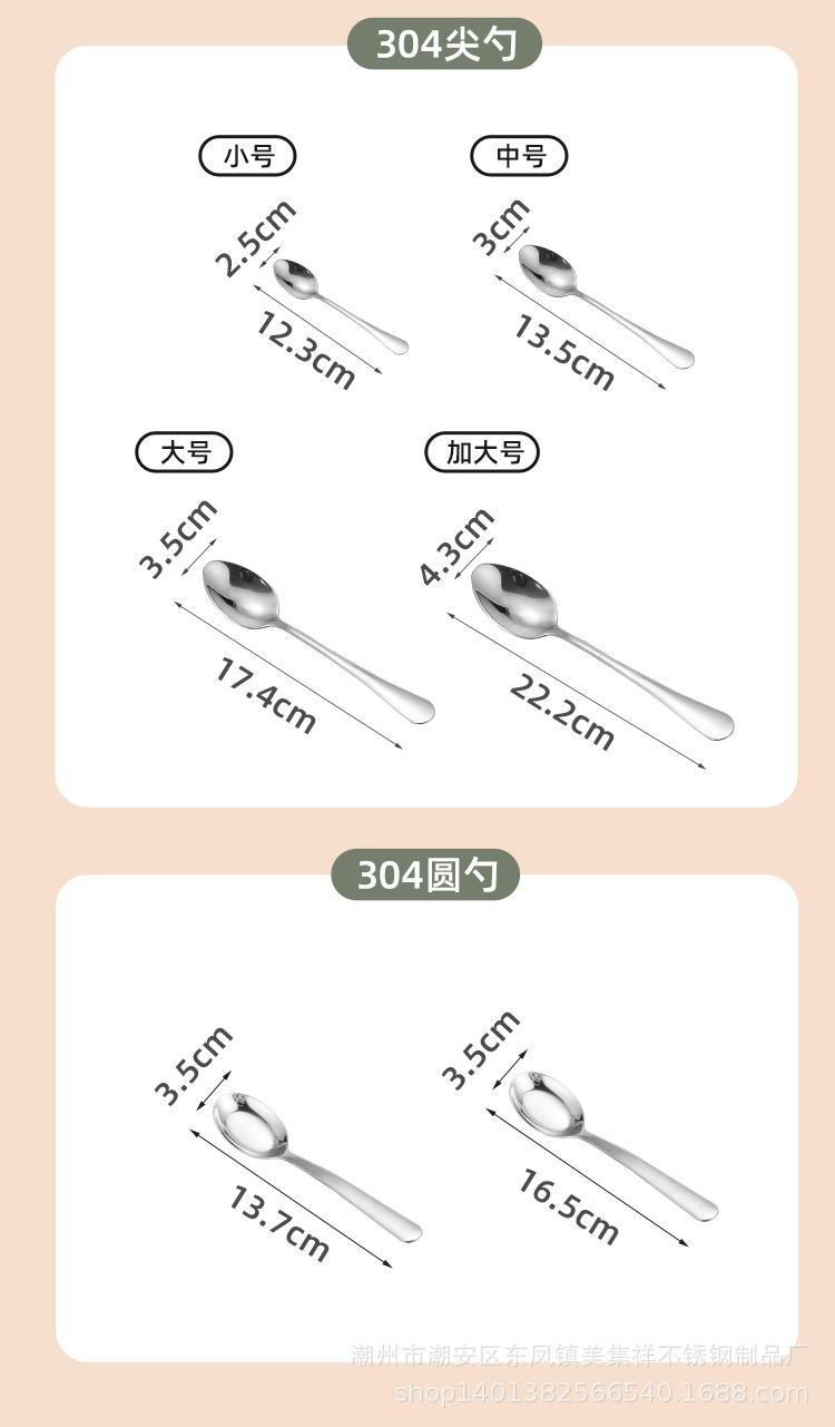 304 thick flat spoon small size, 304 Thickened Flat Spoon Large, 304 thick tip spoon (3# tip spoon), 304 Thick...