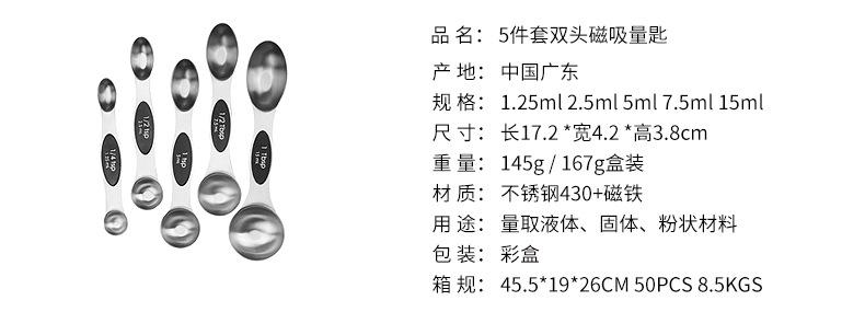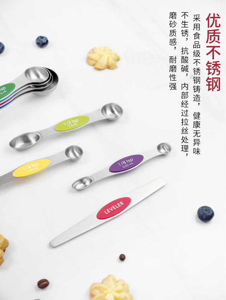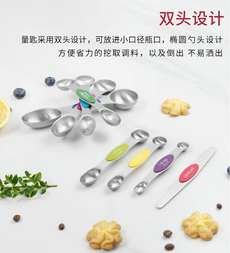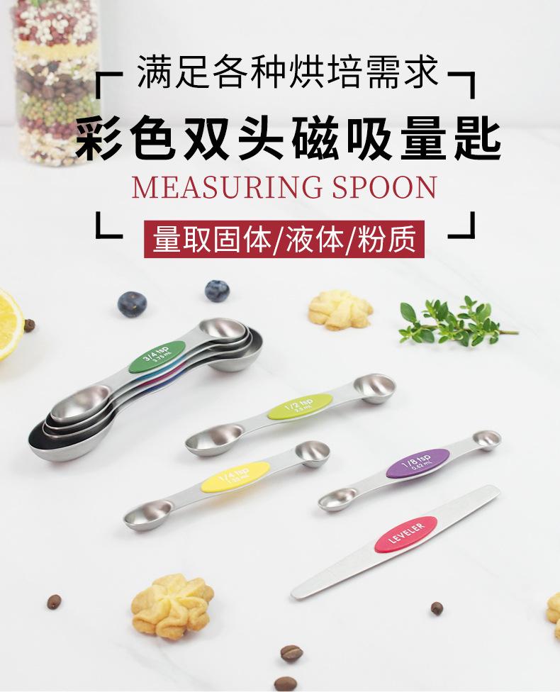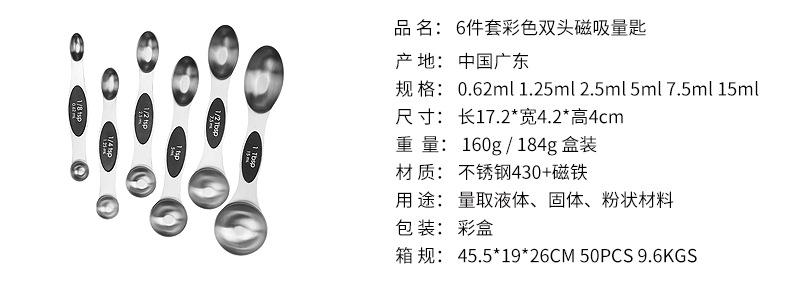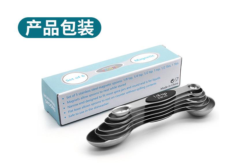 Cuchara medidora de doble cabeza de acero inoxidable de color Amazon, juego de 6 piezas, cuchara para condimentar, cuchara medidora con escala para hornear, succión magnética