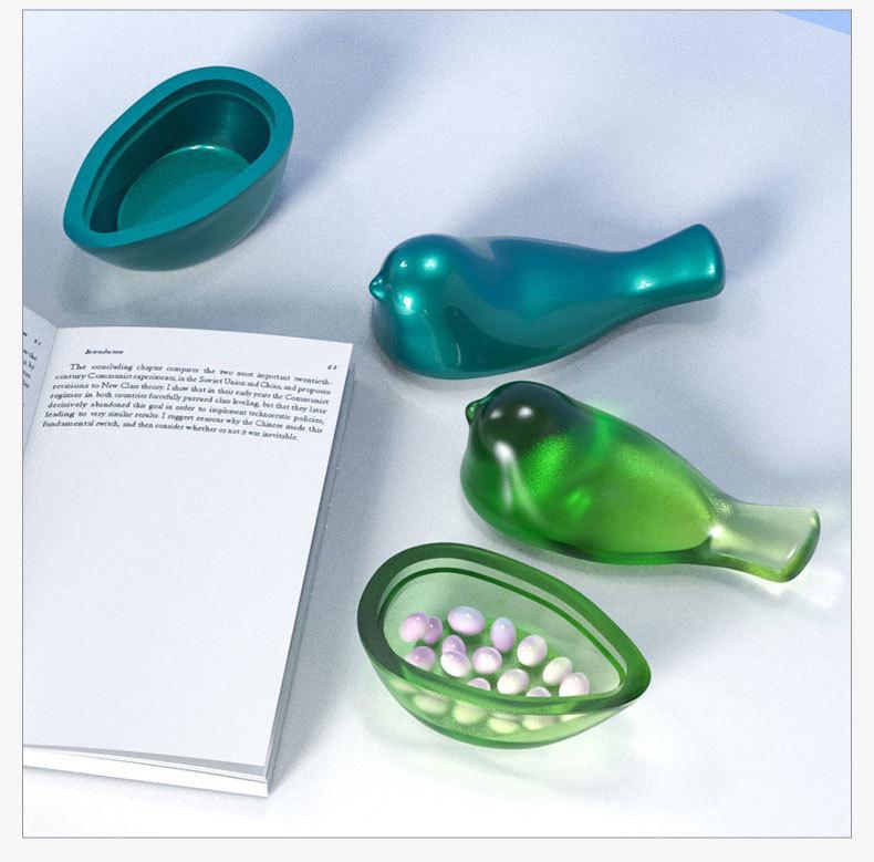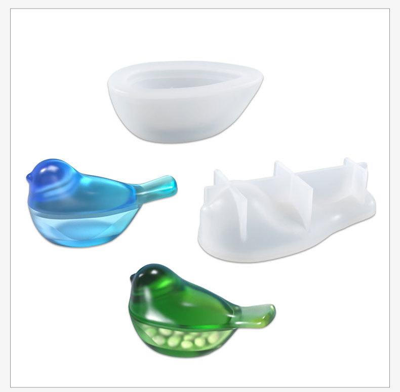 Molde de resina para pájaro DIY mesa de alto espejo joyería caja de almacenamiento de pájaro 3D molde de silicona al por mayor