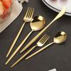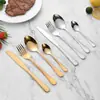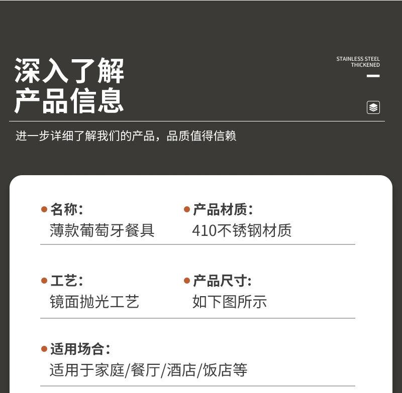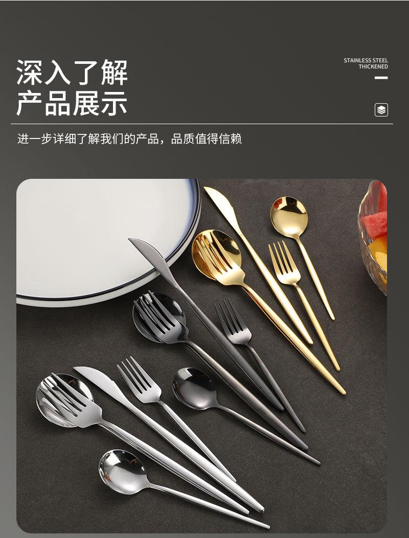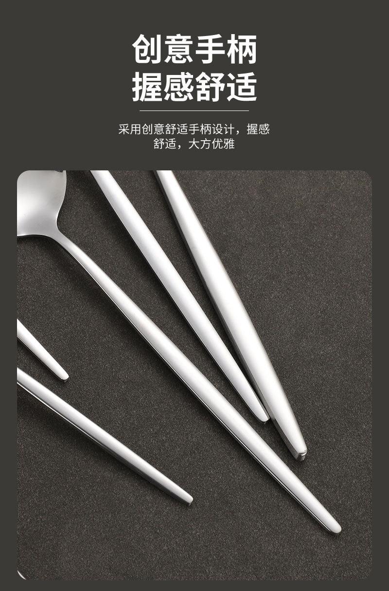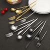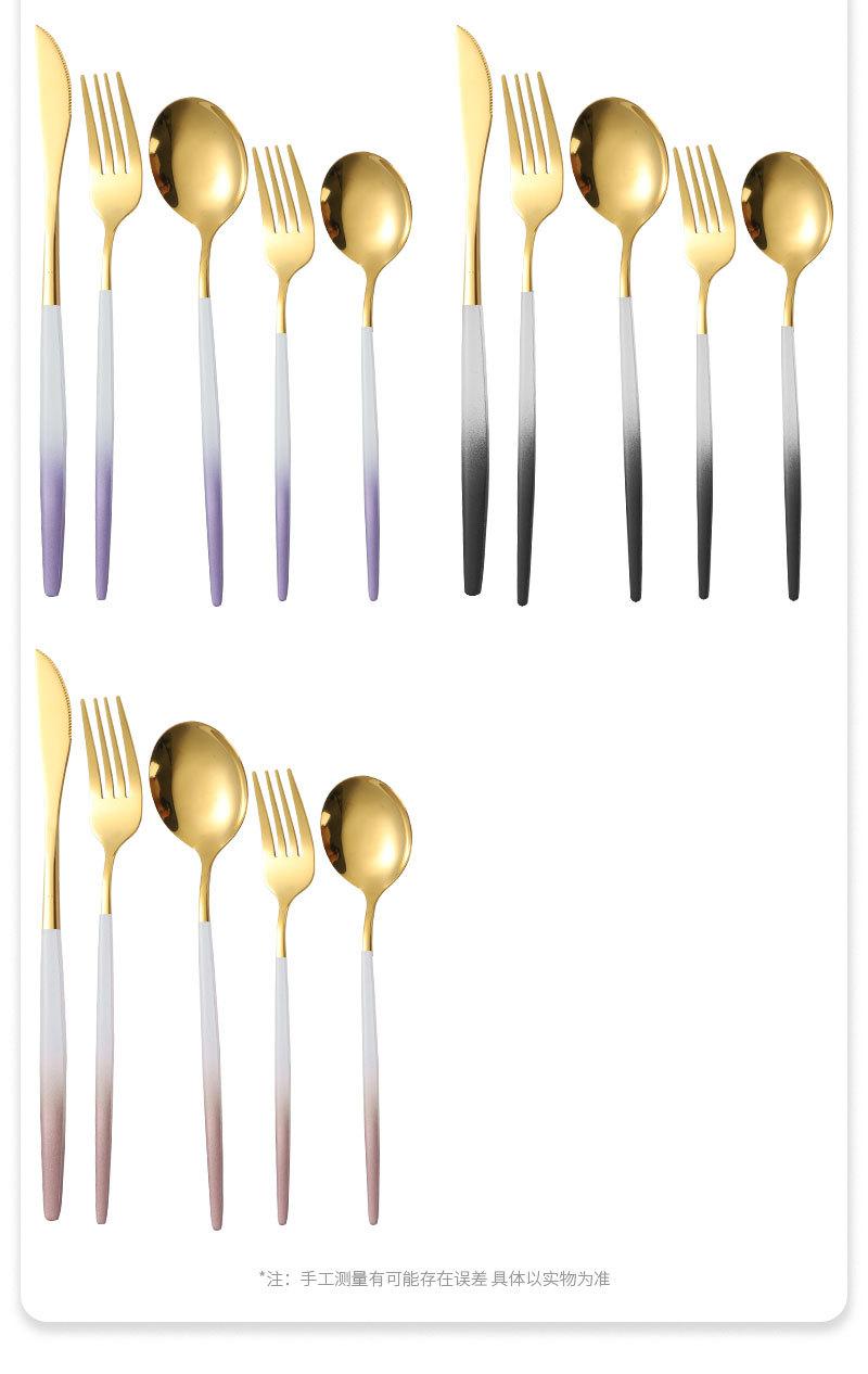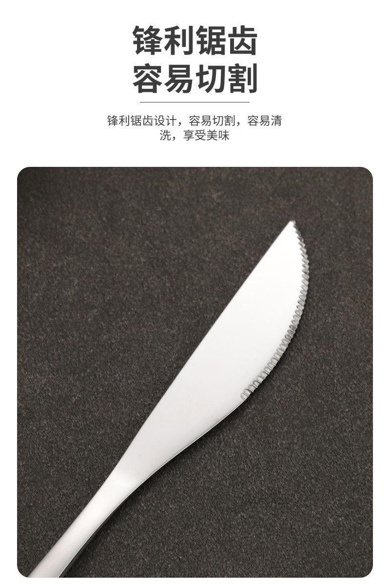 Juego de vajilla occidental: cuchillo portugués, tenedor y cuchara, cinco piezas principales: cuchillo para carne de acero inoxidable, tenedor y cuchara, cuchara de postre de punta fina.