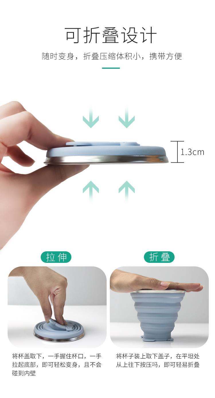 | Taza plegable de silicona, fabricante de fuentes, taza telescópica de silicona creativa para viajes al aire libre, gran capacidad, diseño ultrafino. |