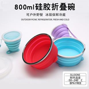 | Cuenco plegable de silicona para viajes al aire libre, recipiente retráctil portátil para fideos instantáneos con tapa, lonchera para picnic al aire libre para niños |