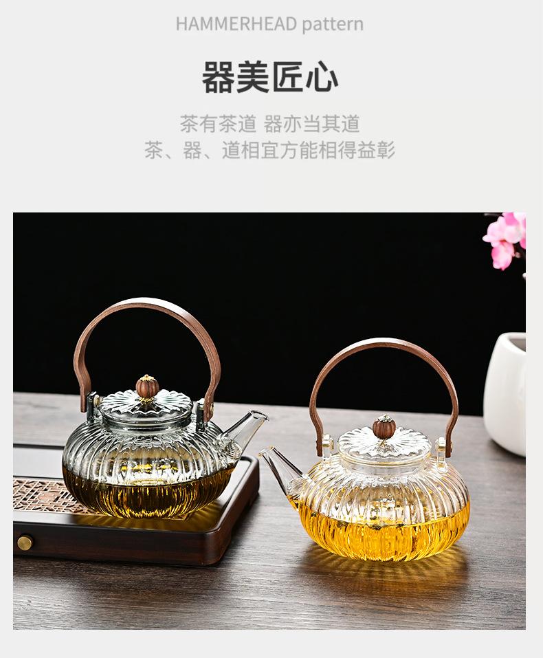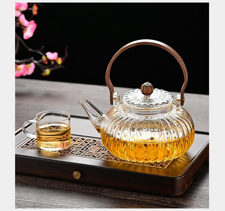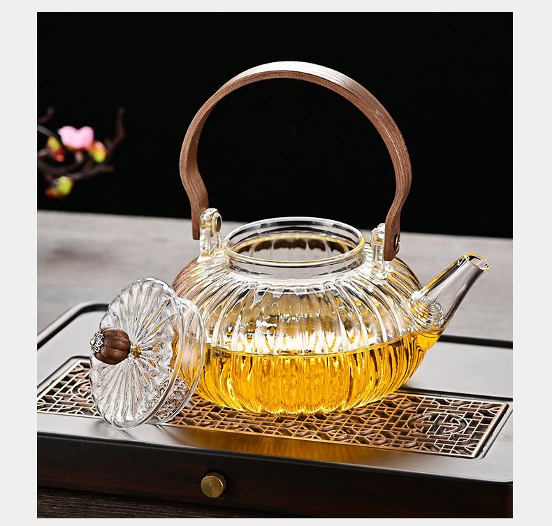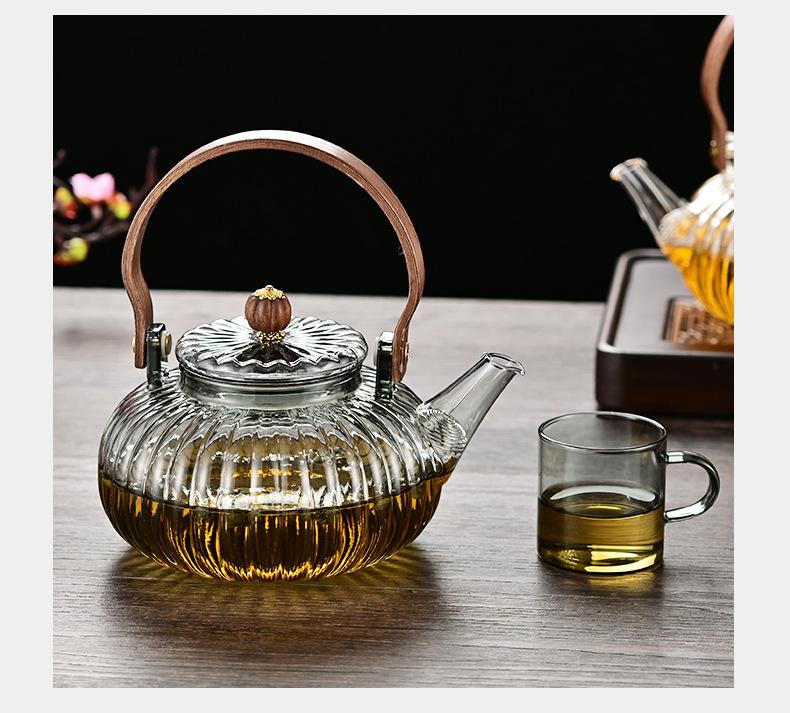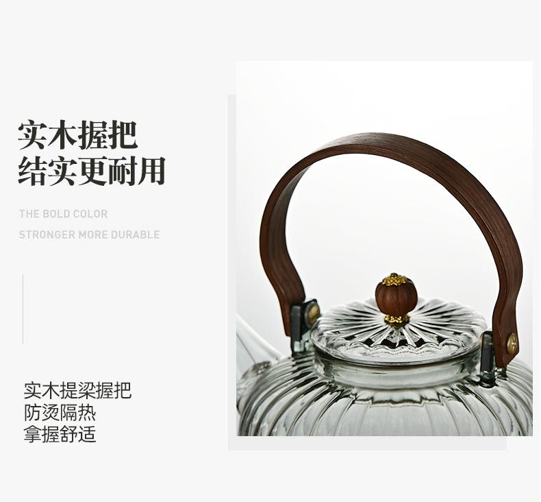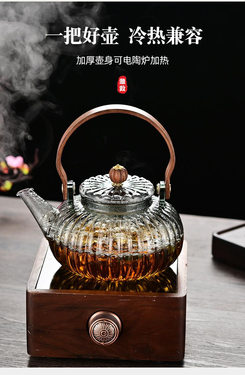 Compra Tetera de Vidrio con Mango de Madera Negro, Juego de Té con Estufa Cerámica Eléctrica para Preparar Té, Filtro de Acero Inoxidable, Estilo Vintage de Lujo Ligero al por mayor en Joom.pro