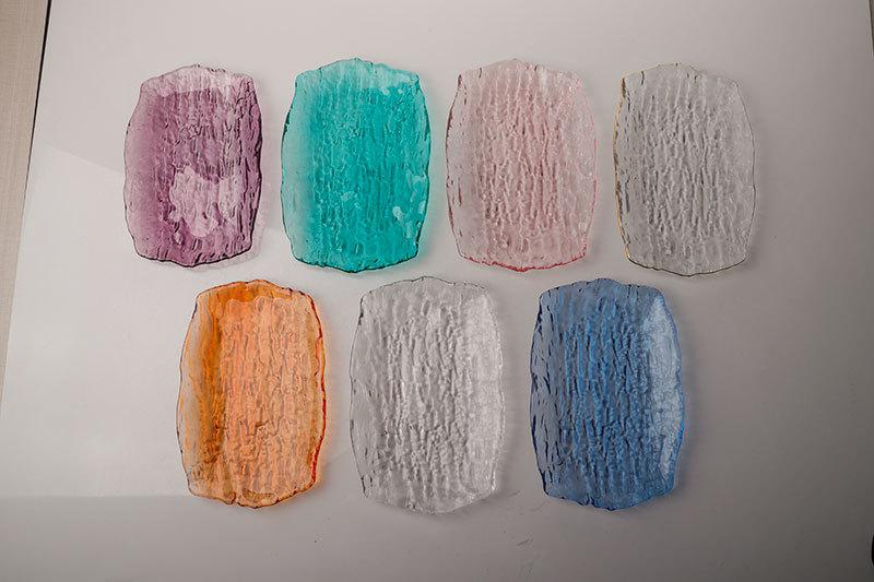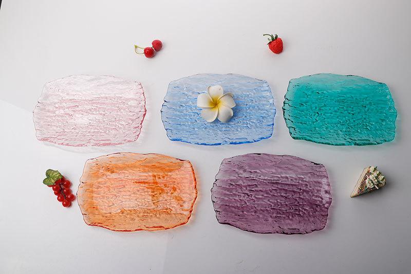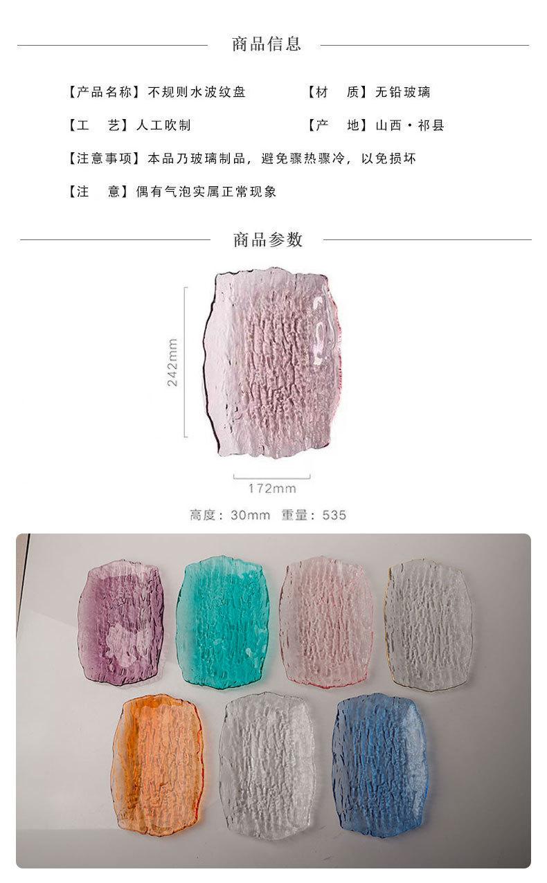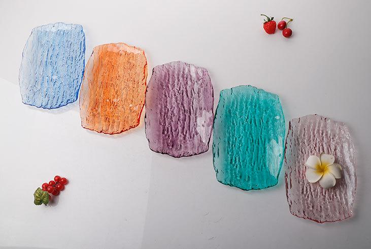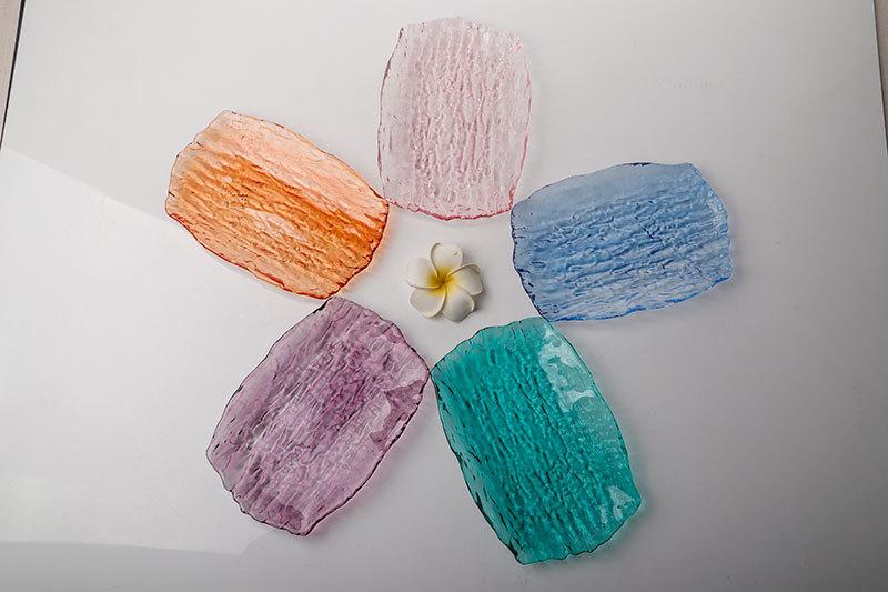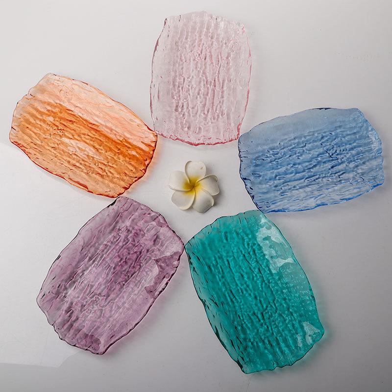 Bandeja de té de vidrio pequeña de estilo japonés con diseño creativo de ondas de colores, juego de té de kung fu para el hogar, bandeja para preparar té en seco
