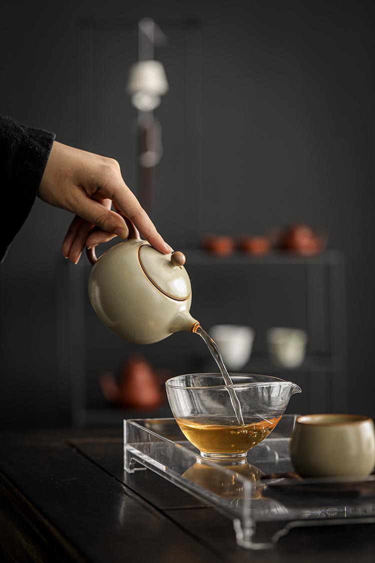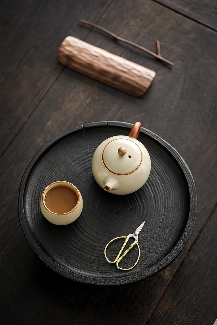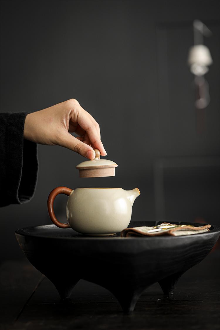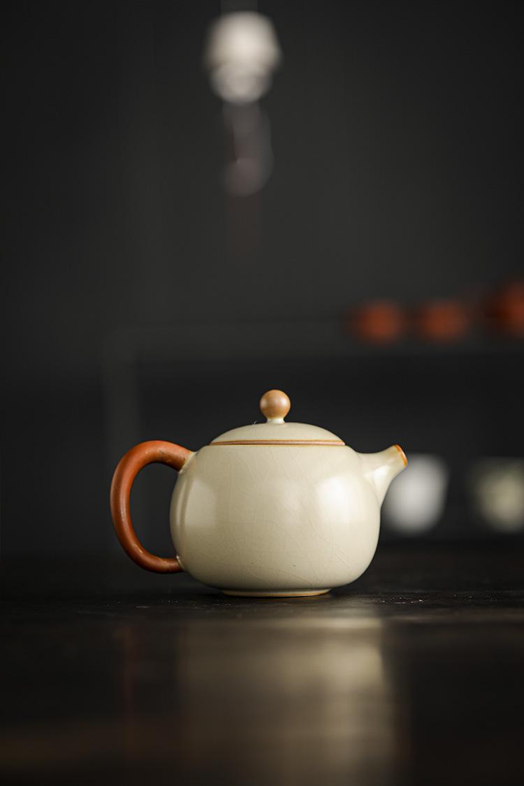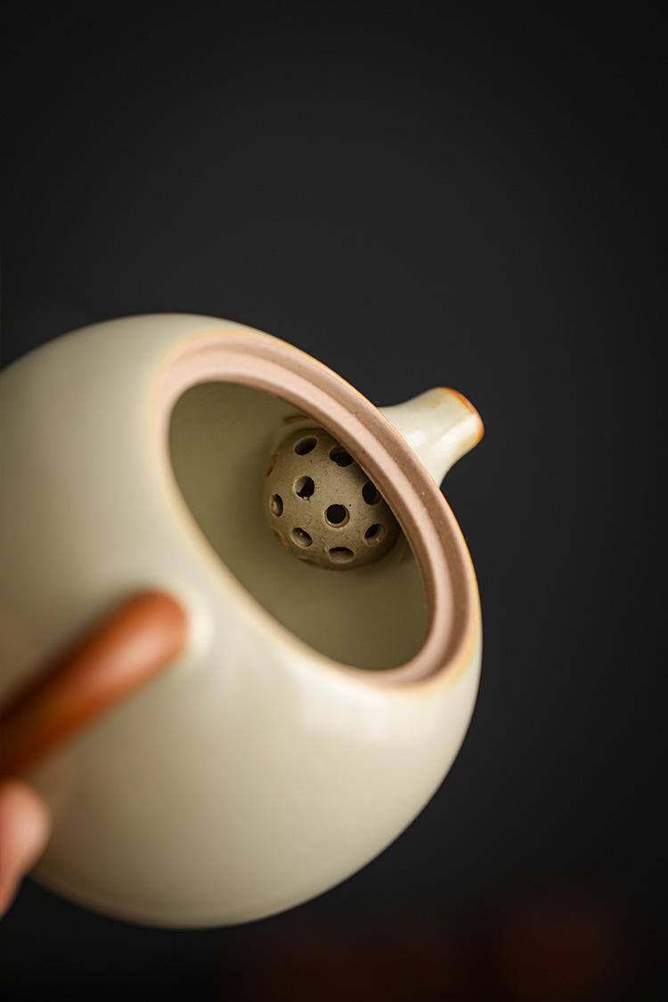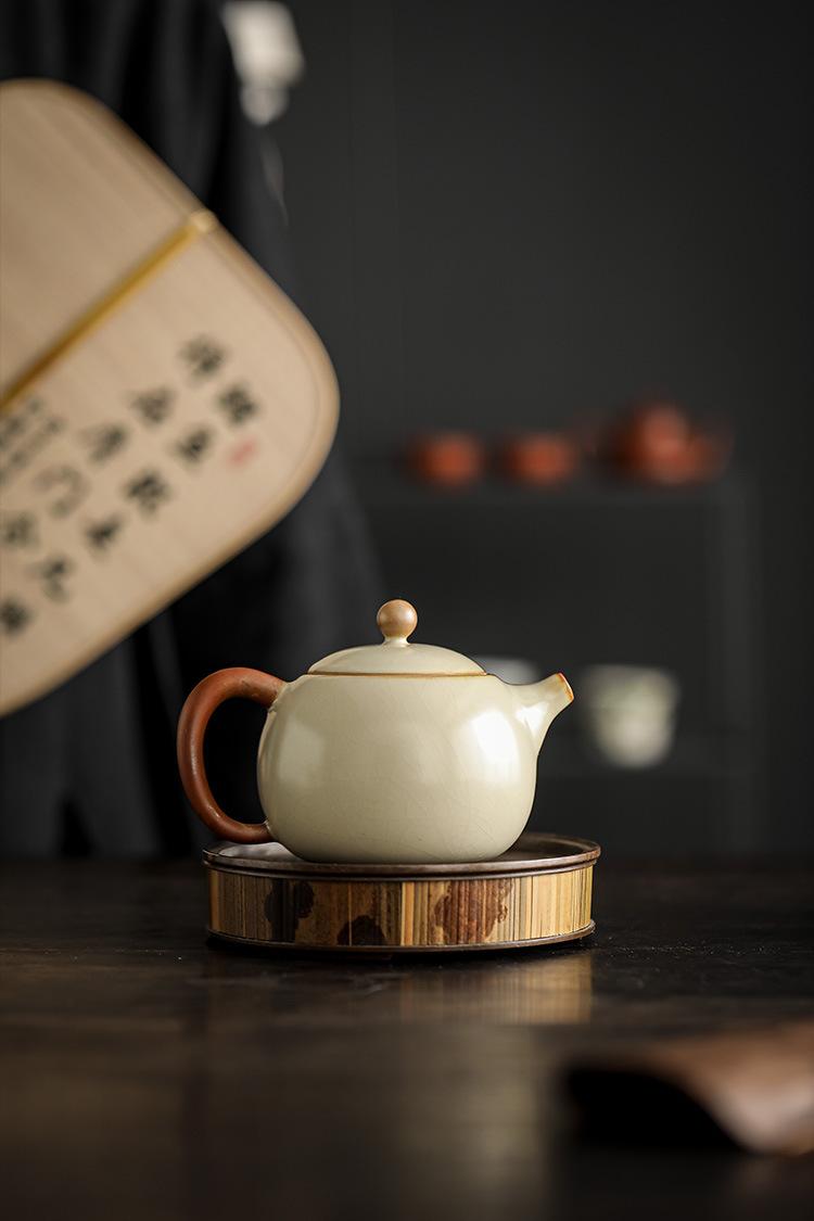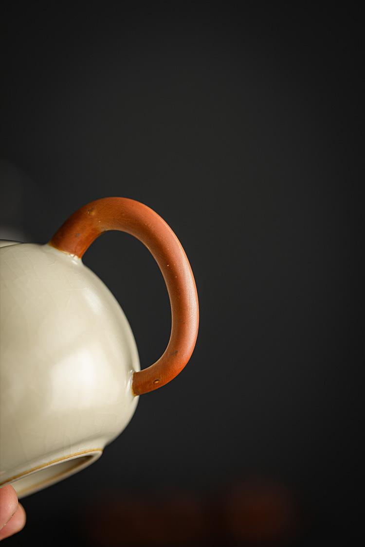 Tetera doméstica Longdan de horno Ru beige Jiuhuan que se puede abrir para levantar la tetera china de línea para hacer té juego de té kung fu
