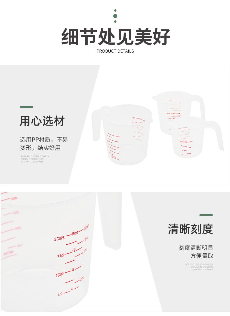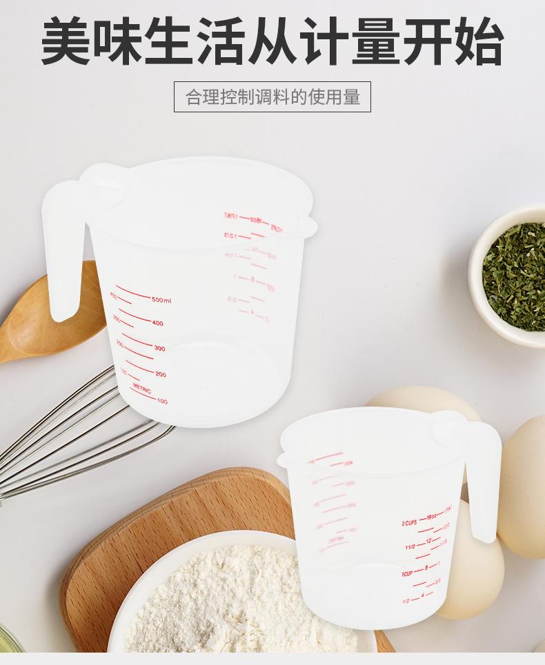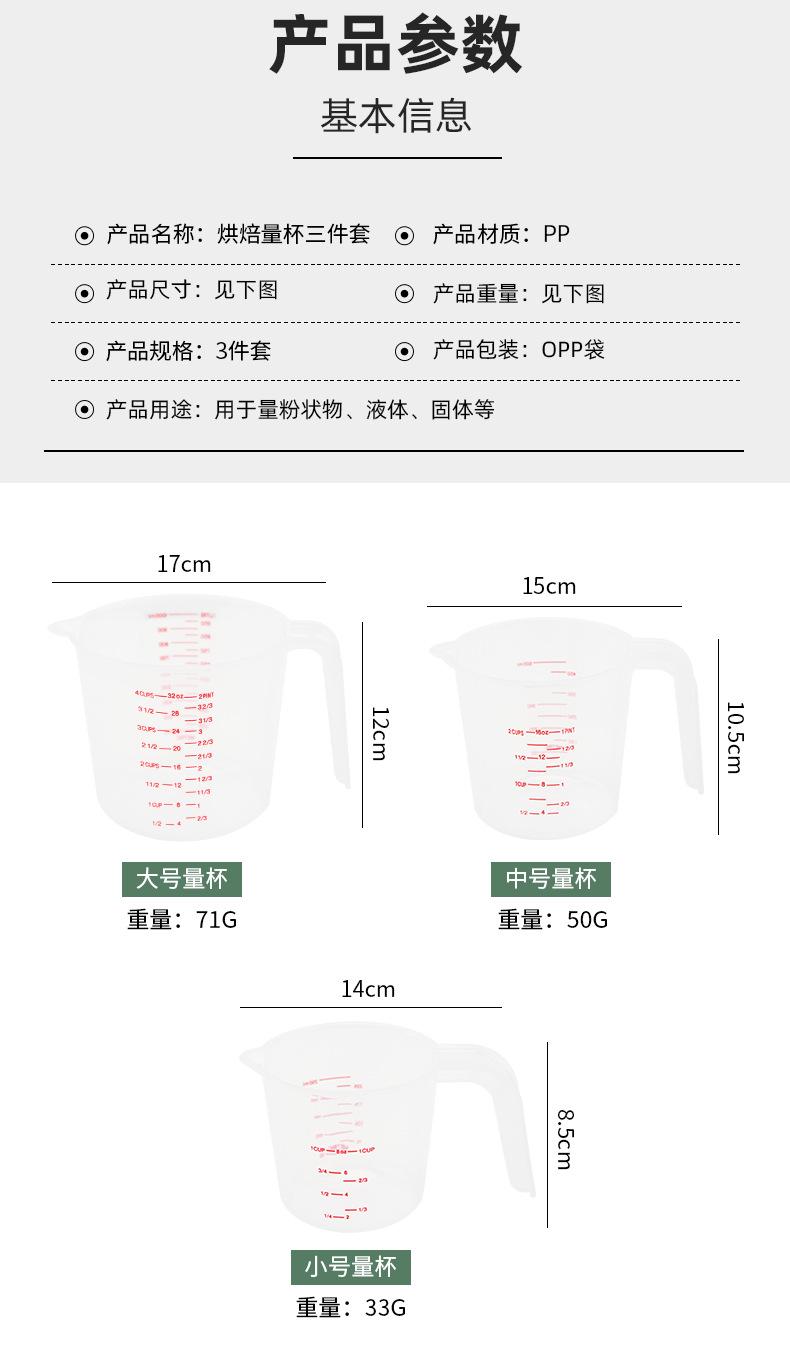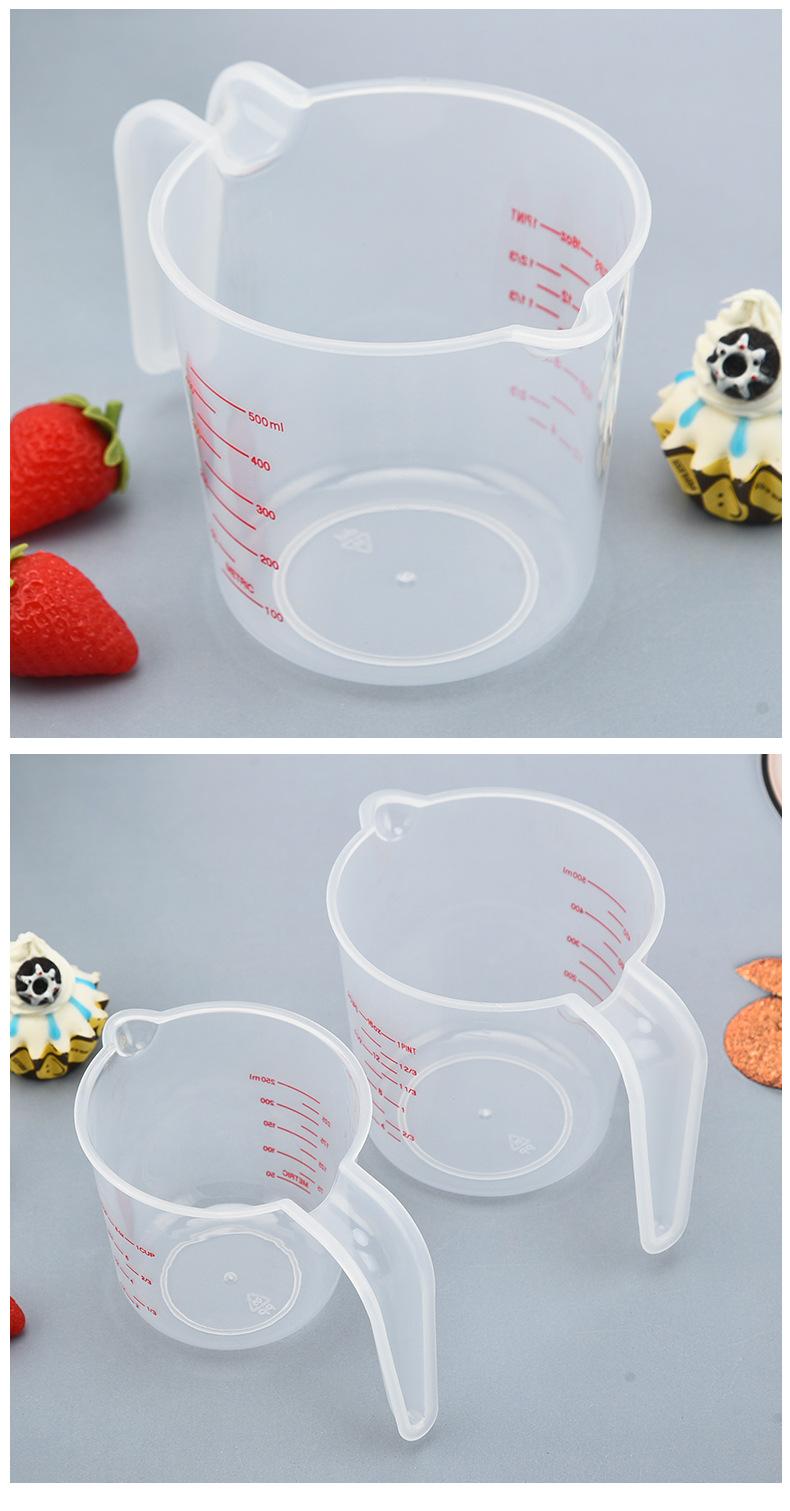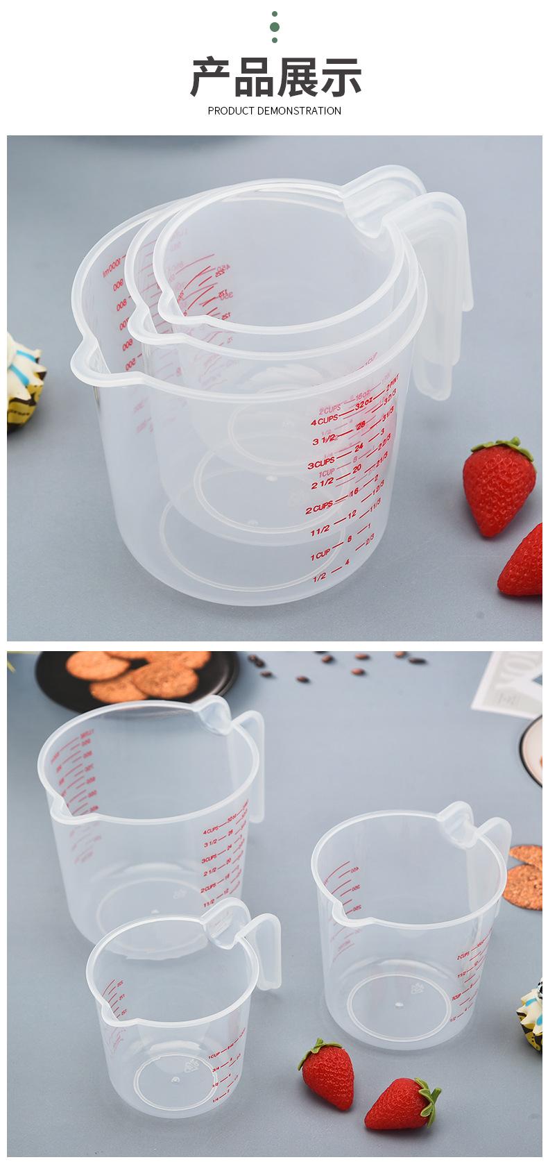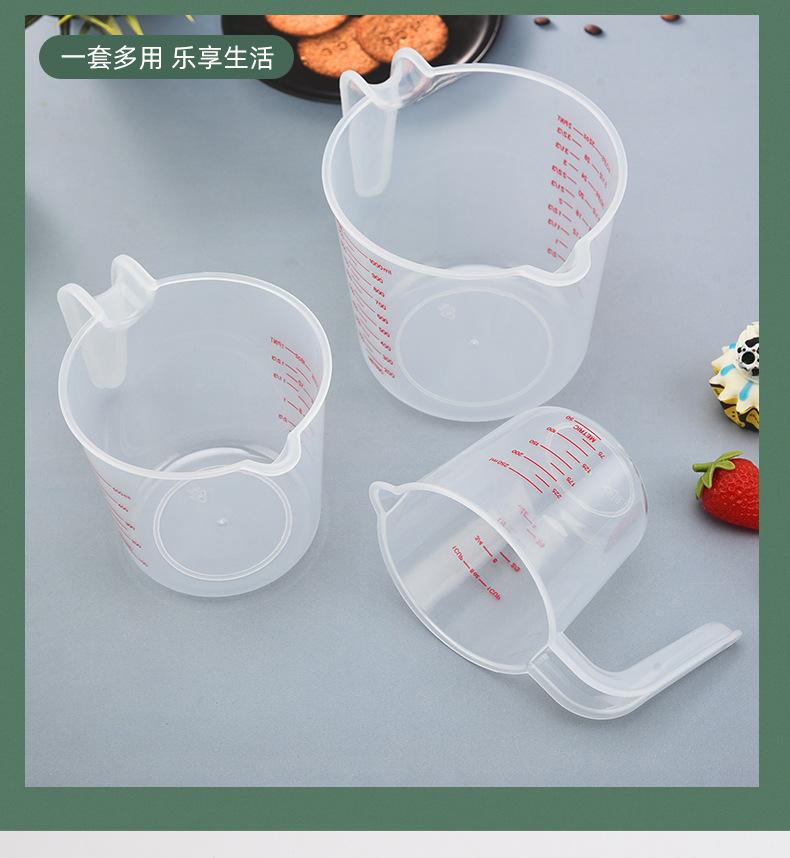 Juego de tres tazas medidoras de cocina para hornear, de bricolaje, transparentes con mango de escala, taza medidora de plástico, cubo medidor de gran capacidad