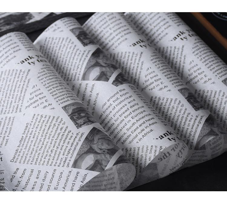 Papel absorbente de aceite para hornear, papel para envolver pasteles, papel absorbente de aceite para alimentos fritos, papel de periódico impreso en inglés, papel de almohadilla 100% a prueba de aceite