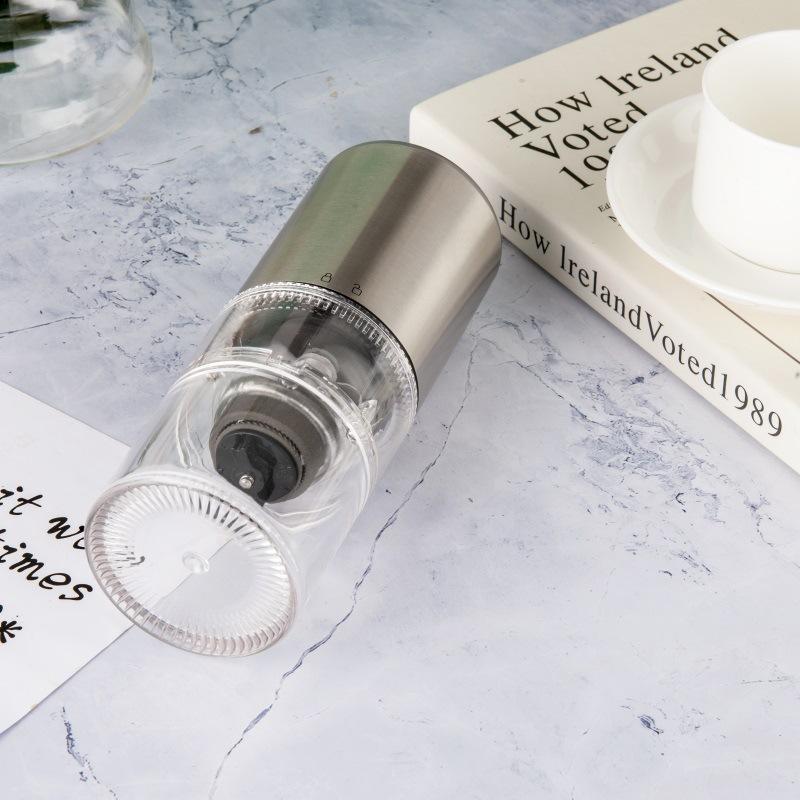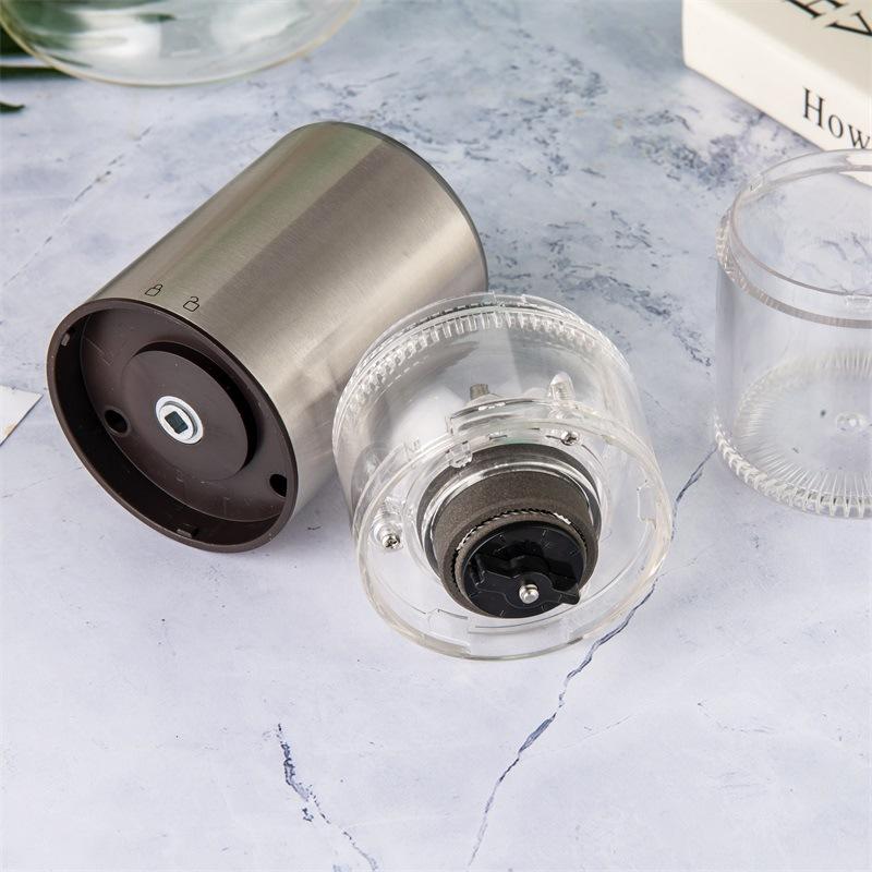 Contenedor de frijoles transparente, cuerpo de acero inoxidable.