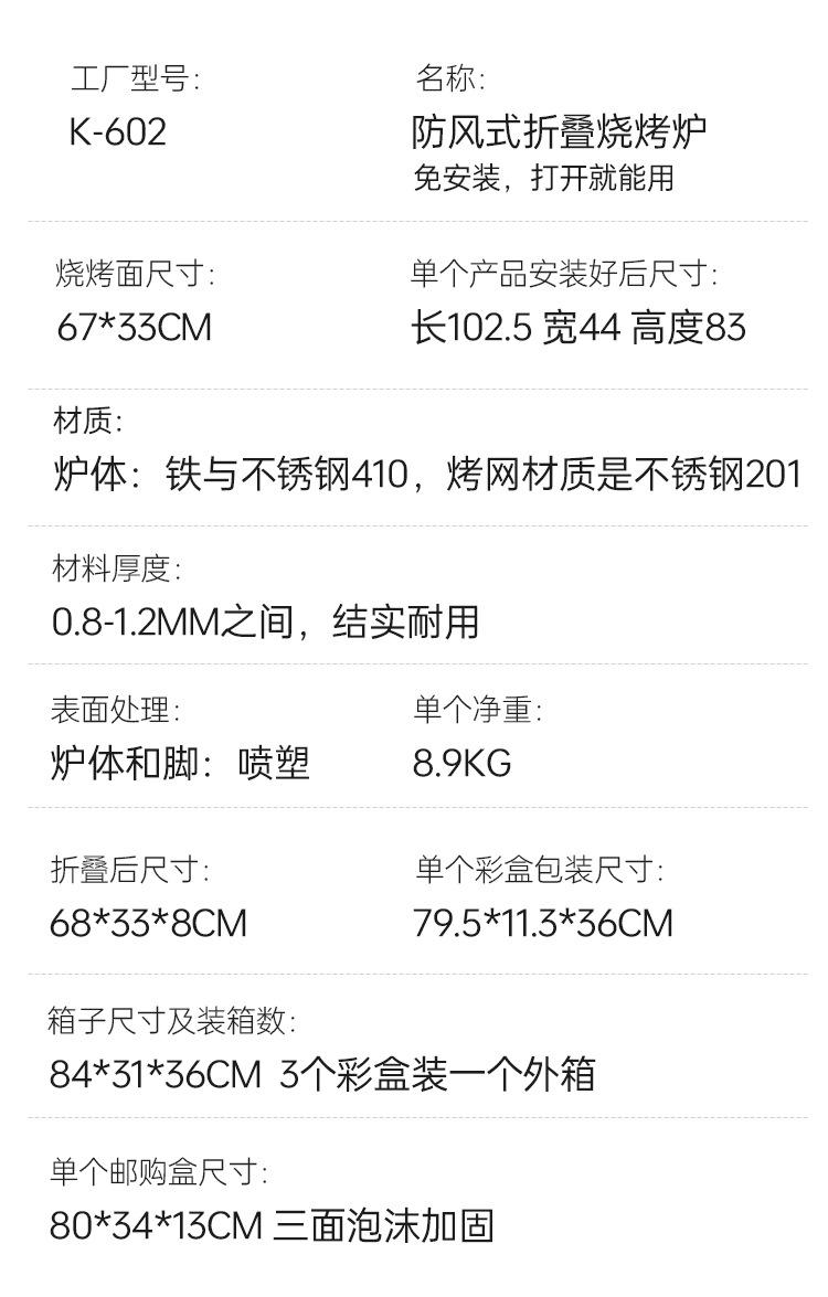 | Estufa de barbacoa plegable para exteriores, portátil, multifunción, para acampar, con caja negra |
