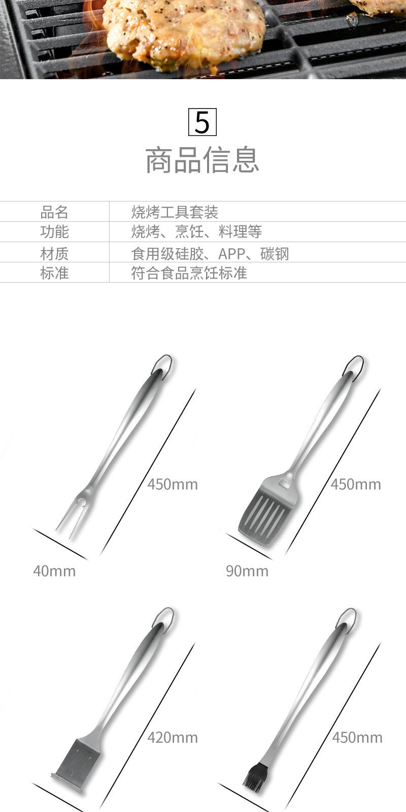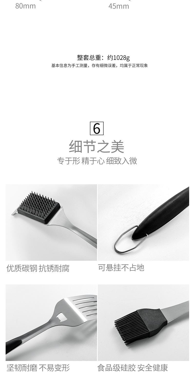 Abrazadera 207g, pala 315g, tenedor 192g, cepillo de aceite 205g, cepillo de limpieza 310g