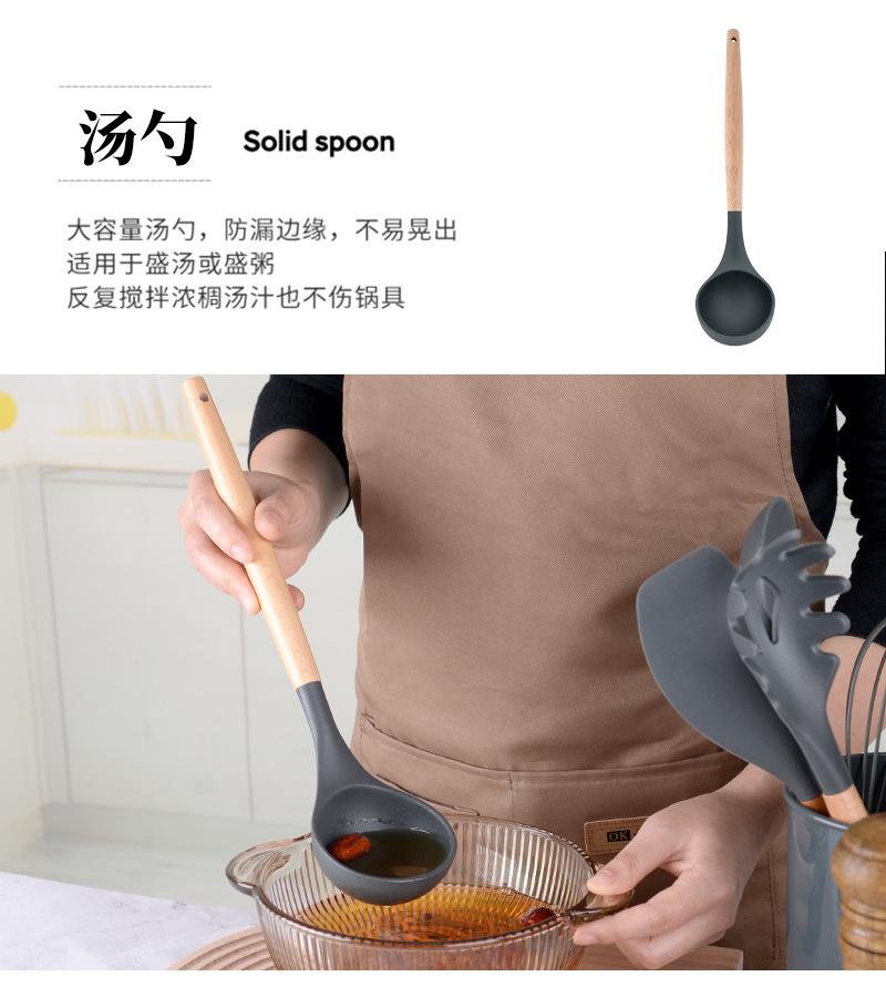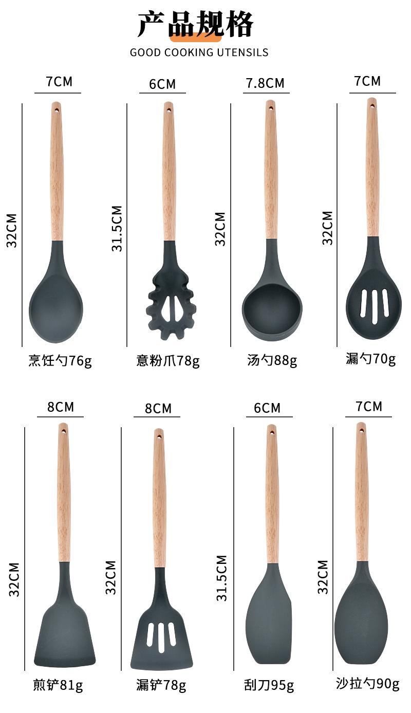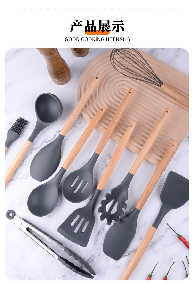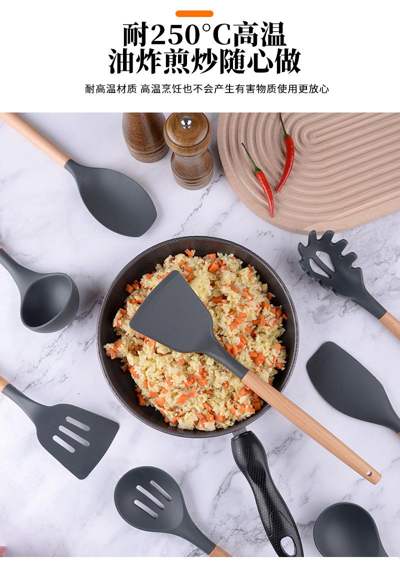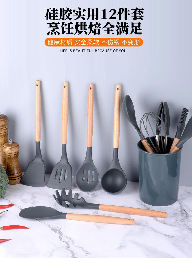Utensilios de cocina de silicona juego de 12 piezas juego de cocina para el hogar sartén antiadherente espátula especial mango de madera cuchara para sopa pala para cocinar