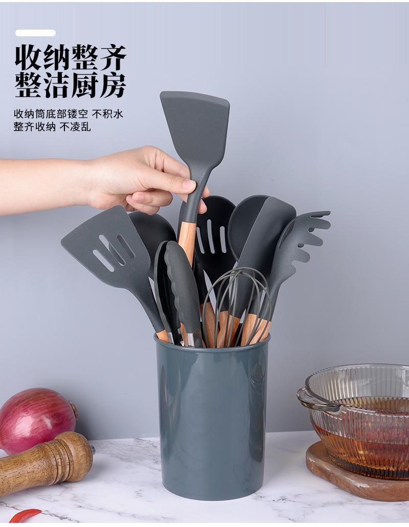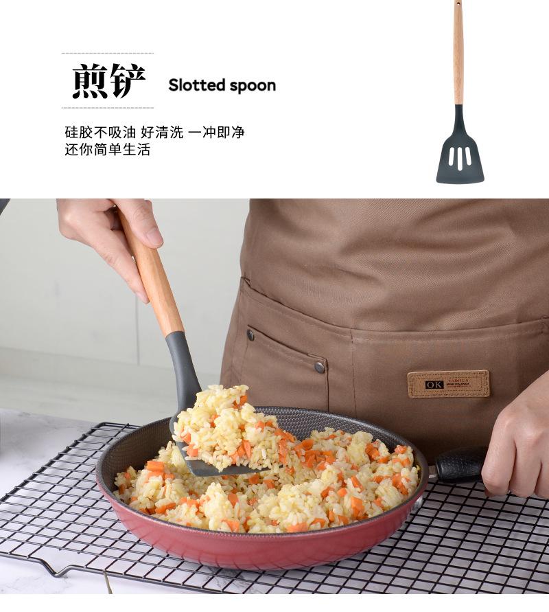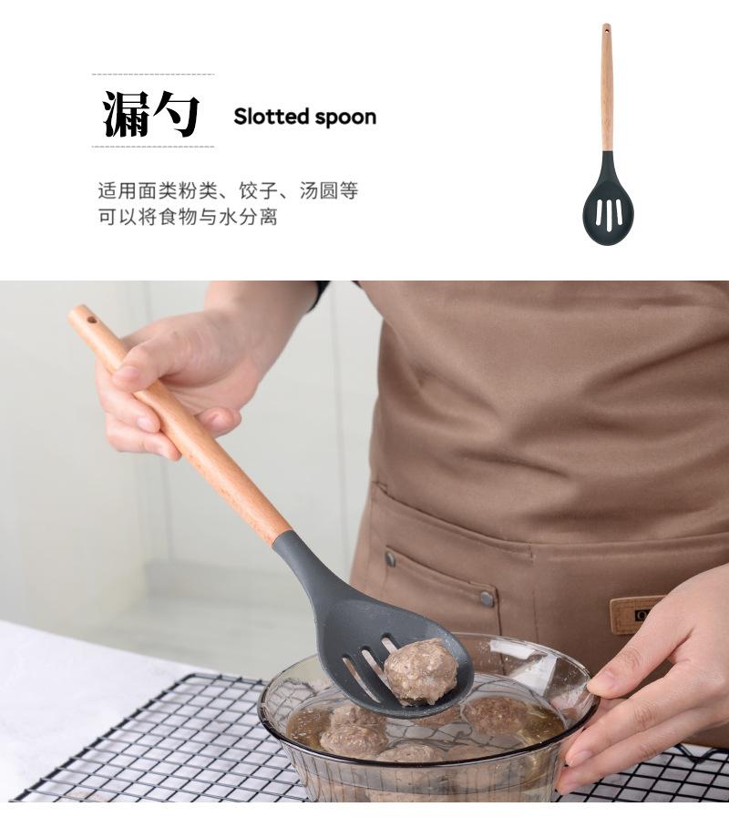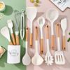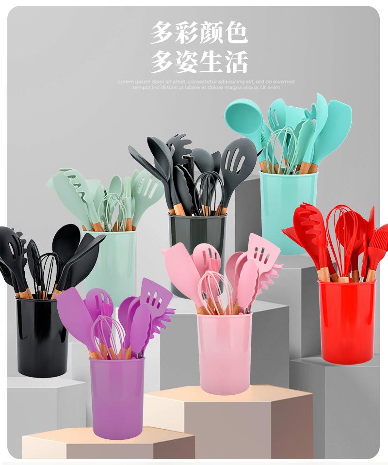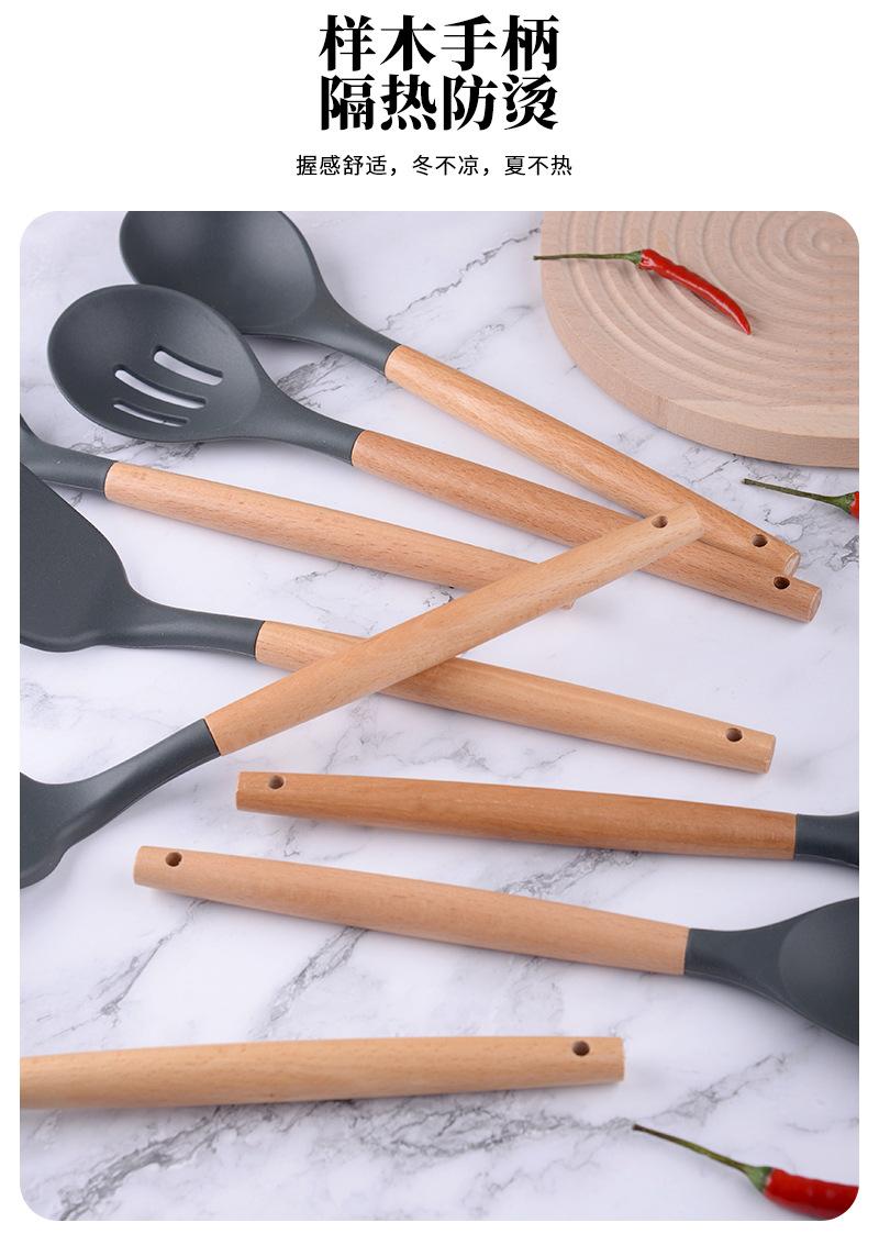 Utensilios de cocina de silicona juego de 12 piezas juego de cocina para el hogar sartén antiadherente espátula especial mango de madera cuchara para sopa pala para cocinar