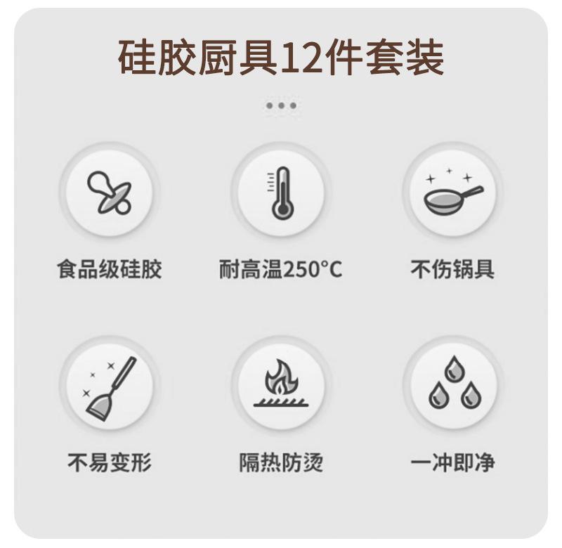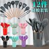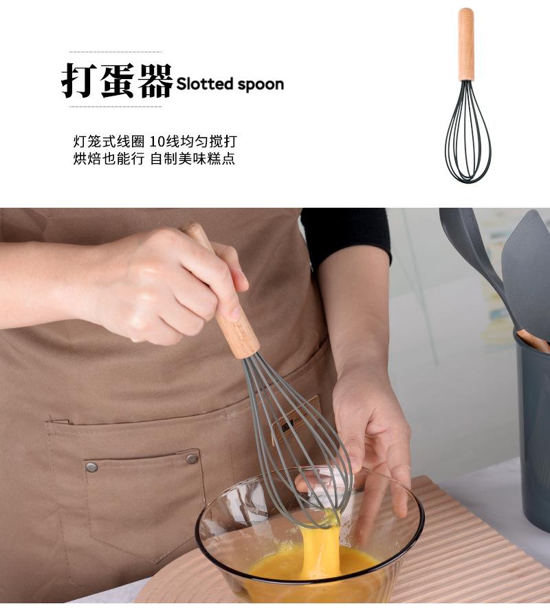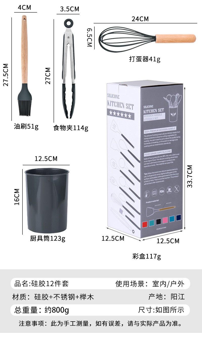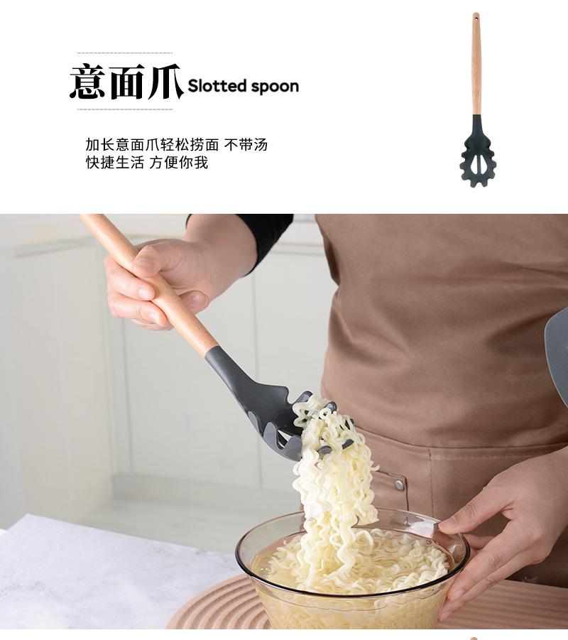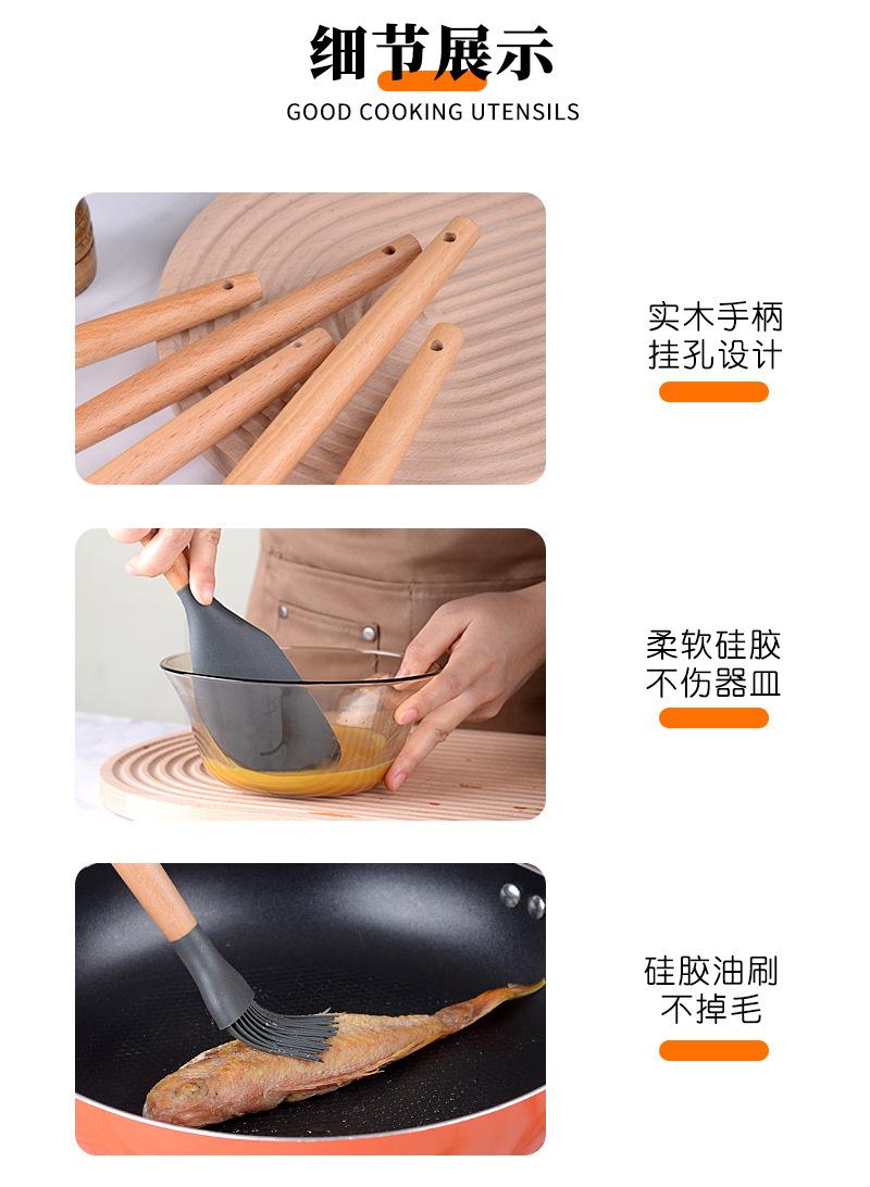 Utensilios de cocina de silicona juego de 12 piezas juego de cocina para el hogar sartén antiadherente espátula especial mango de madera cuchara para sopa pala para cocinar