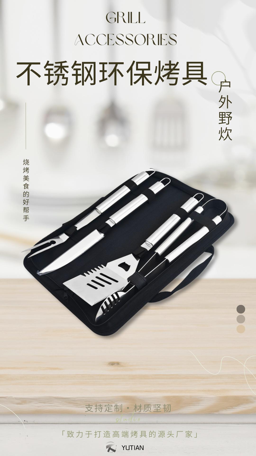 Traje de herramientas para barbacoa al aire libre, superventas en Amazon, bolsa de tela Oxford, traje grande de cuatro piezas para parrilla, venta directa al extranjero