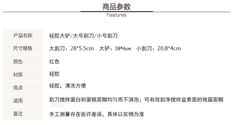 Tamaño del producto: Espátula de silicona: longitud 28cm; ancho 5.5cm; 89g