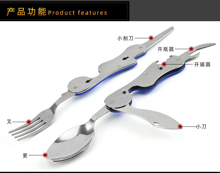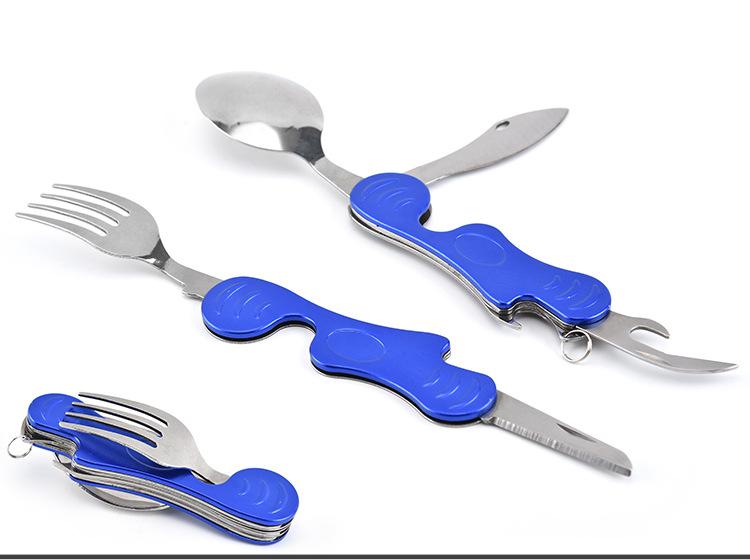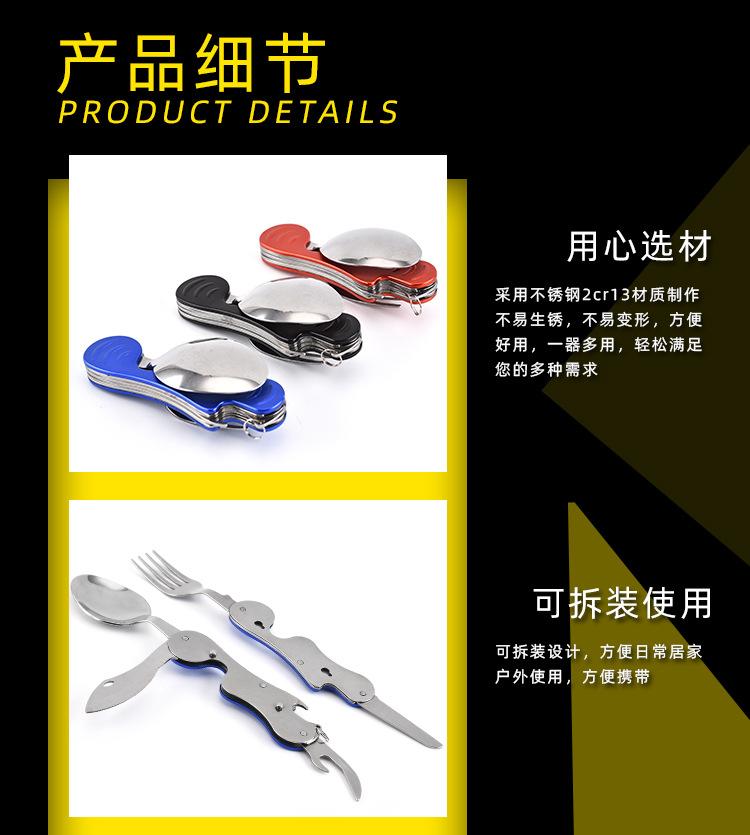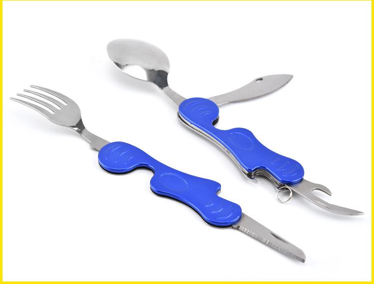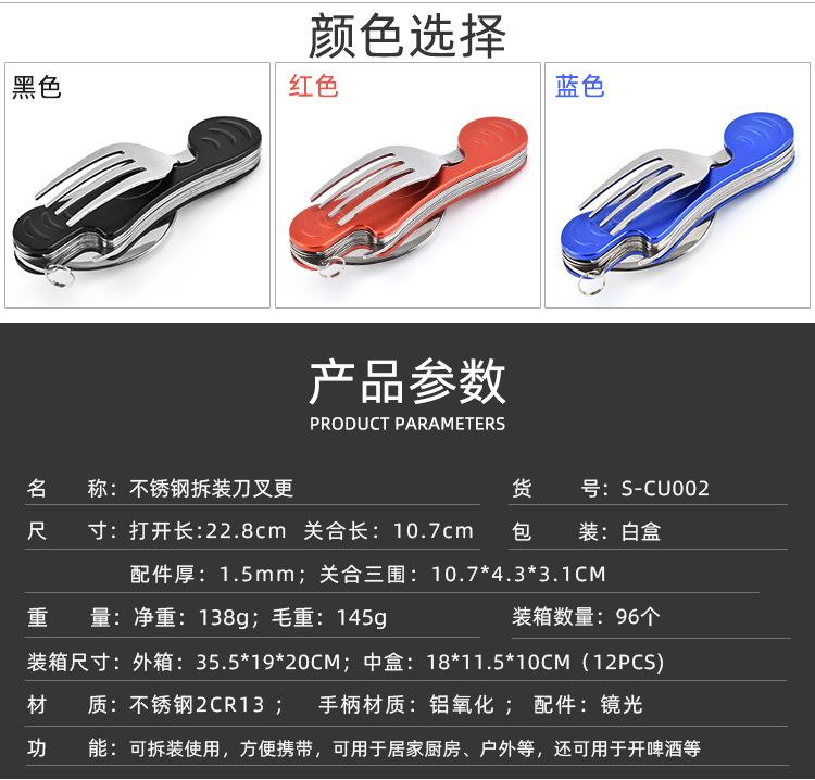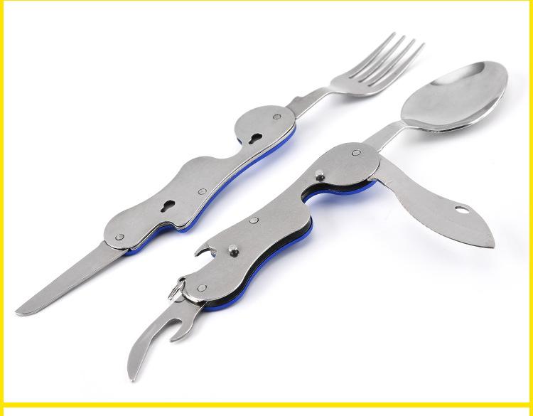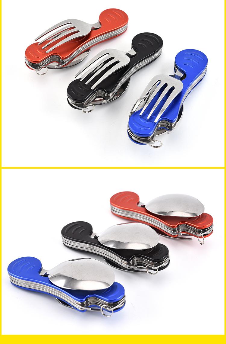 Cuchillo y tenedor plegables de acero inoxidable, directo de fábrica, desmontaje, vajilla para acampar al aire libre, combinación de cuchillo, tenedor y cuchara, vajilla portátil