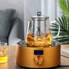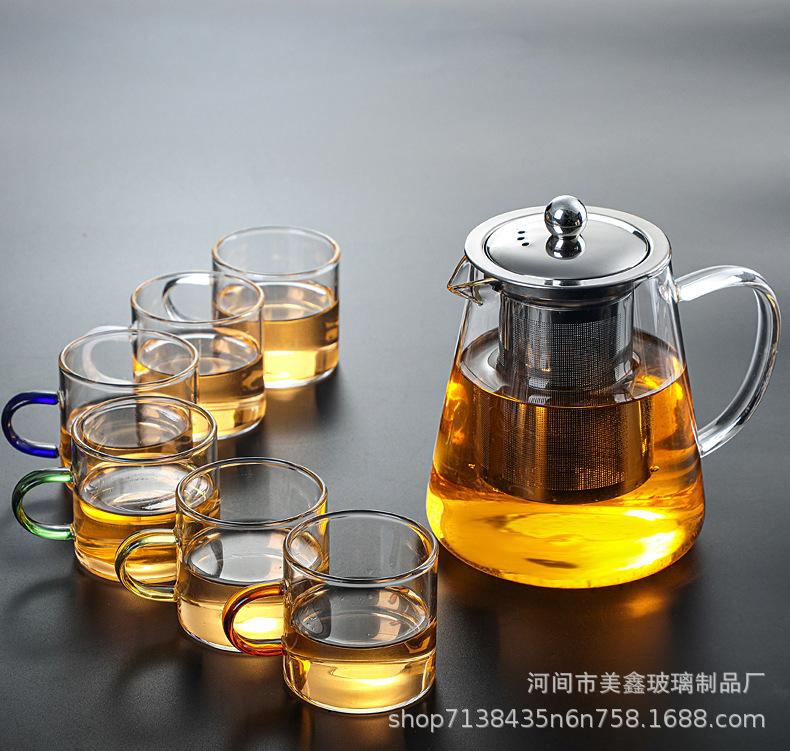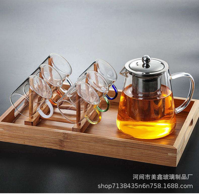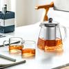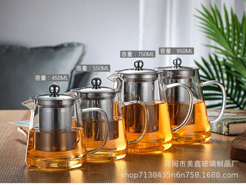 Tetera de vidrio transparente con forma de flor, filtro de acero inoxidable, tetera de vidrio de borosilicato de alta capacidad, tetera triangular calefactora de gran capacidad.